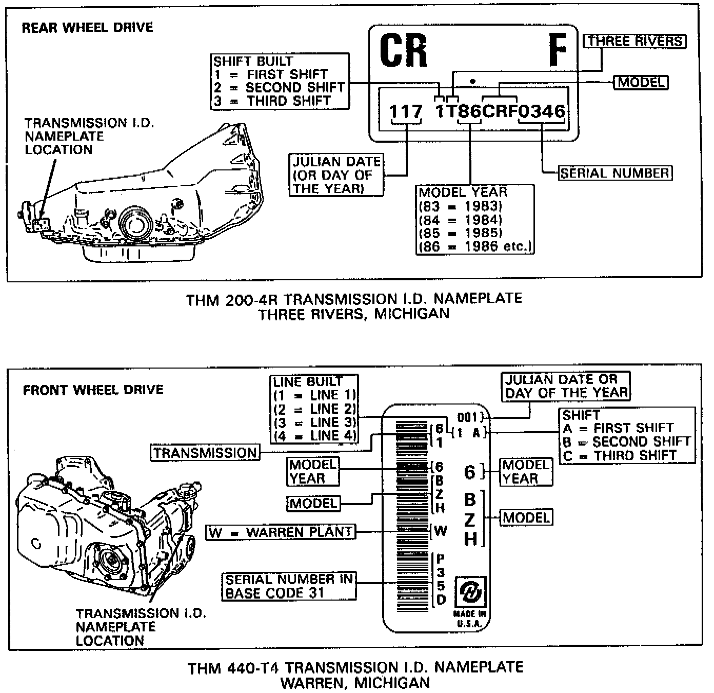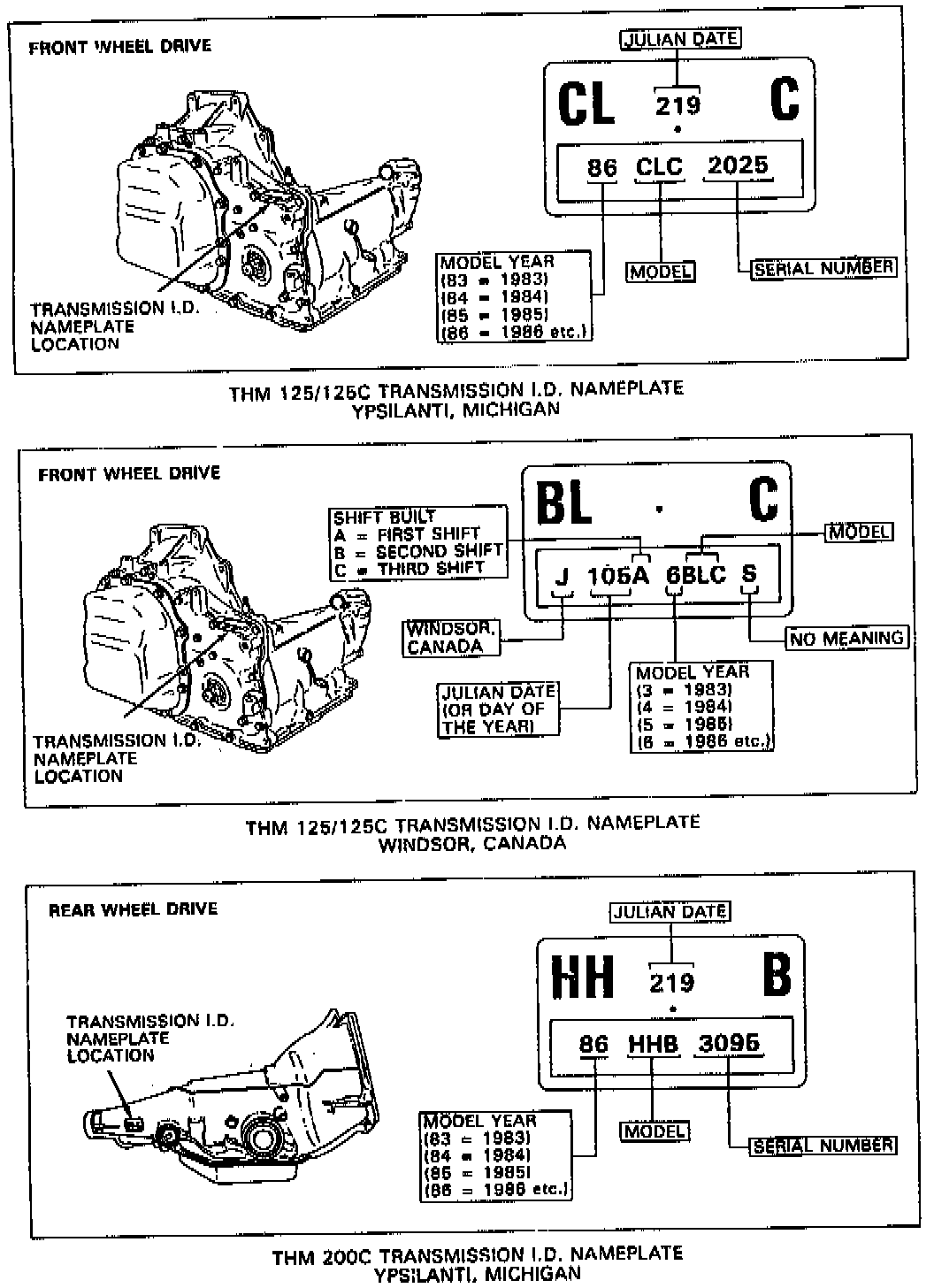 IDENTIFICATION NUMBERS ALL 1986 THM TRANSMISSION MODELS