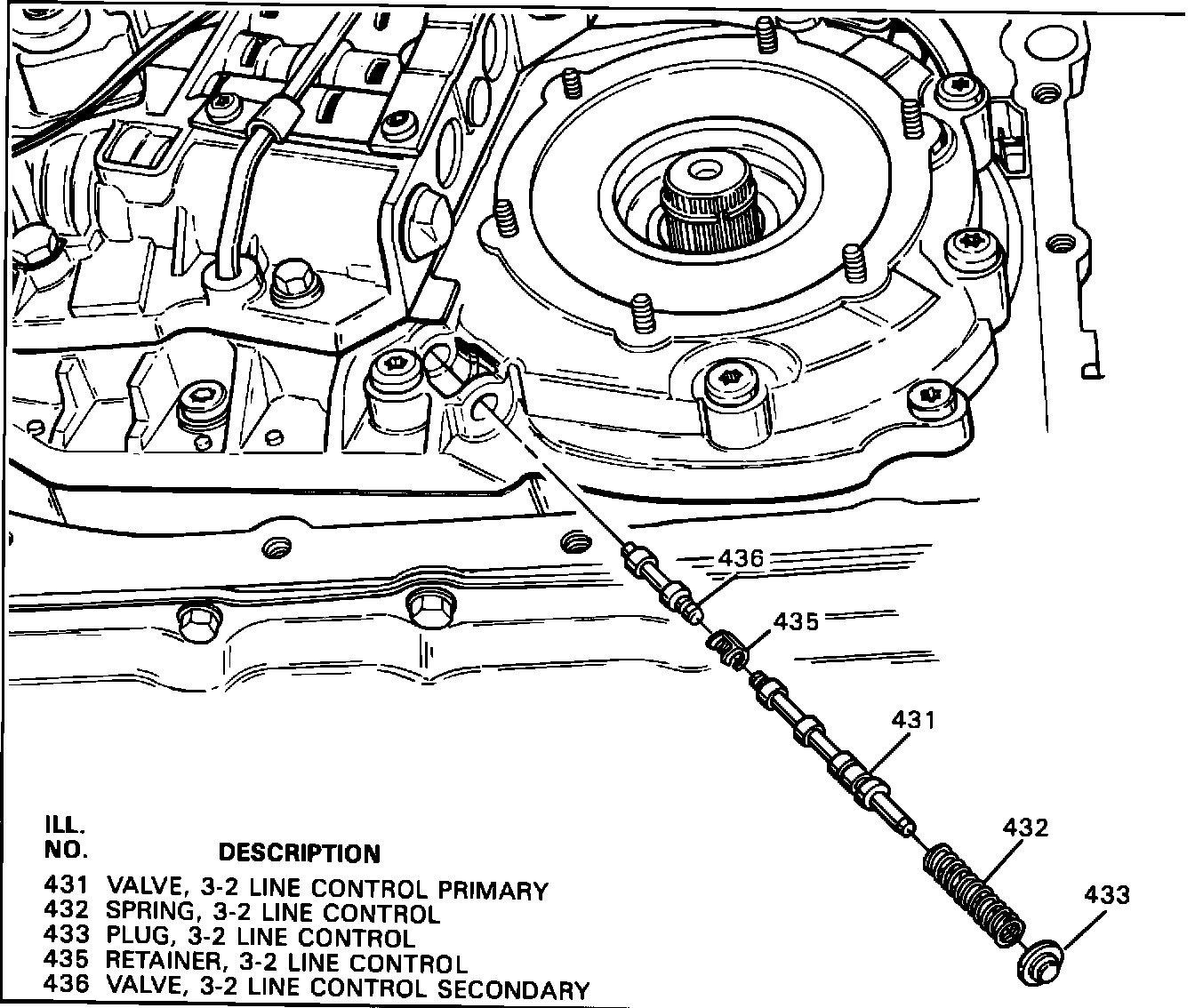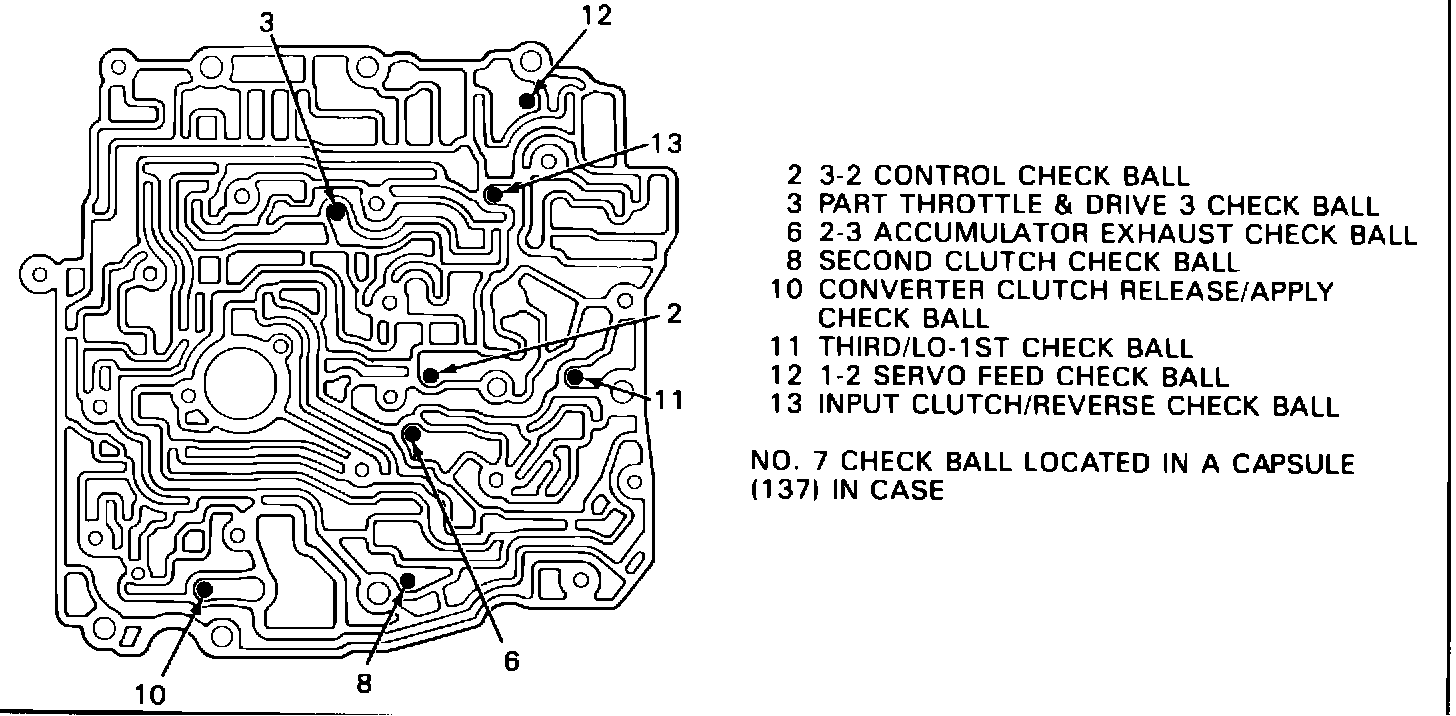 Some 1985-1987 De Villes and Fleetwoods, and 1986 Eldorados and Sevilles equipped with THM 440-T4 transaxles may exhibit very harsh, or intermittent harsh 3-2 down shifts. Very harsh 3-2 part throttle down shifts between 20-40 mph may be caused by a missing or mislocated #2 (3-2 control) checkball. An intermittent harsh 3-2 down shifts during a part throttle detent down shift may be caused by a broken 3-2 line control retainer.