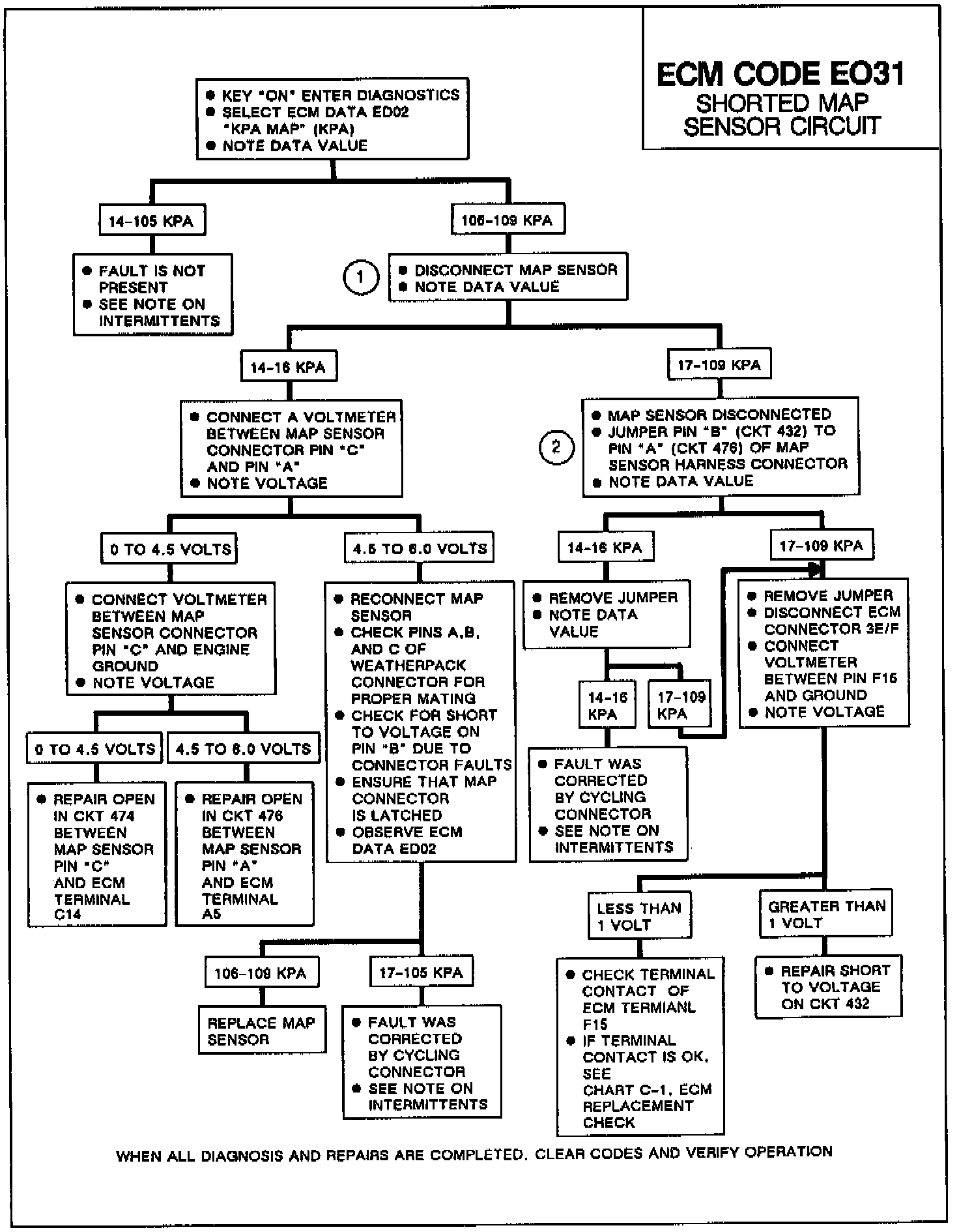 Code EO31 sets when the ECM detects a MAP sensor signal too high (MAP value greater than 108 kPa).