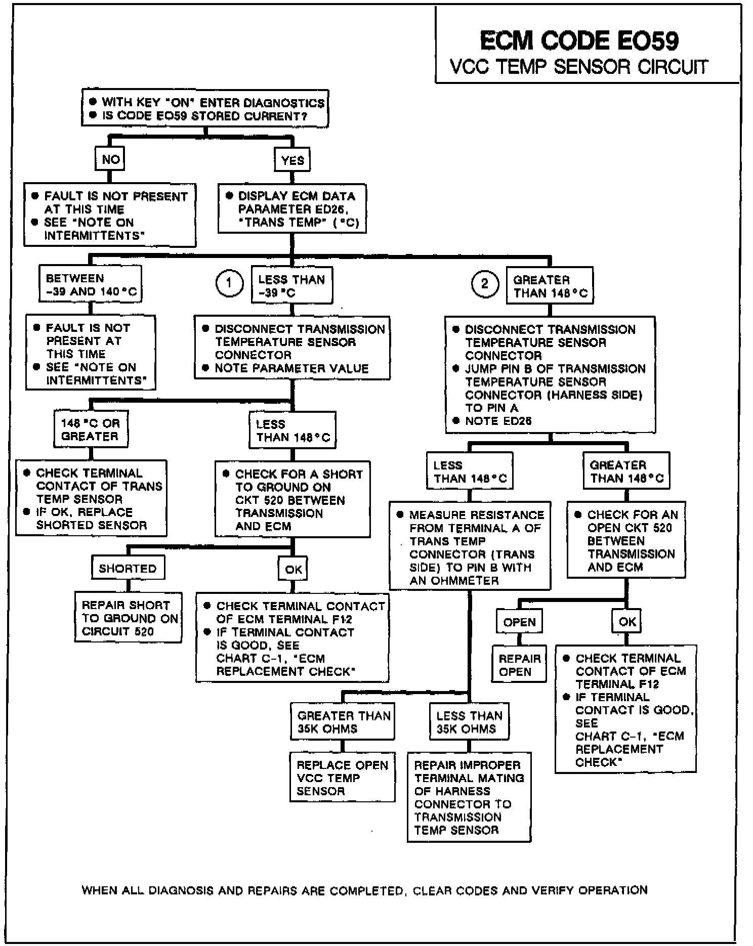 Code EO59 will set the ECM sees a excessively low or excessively high VCC temperature when the coolant is hot or cold, respectively.