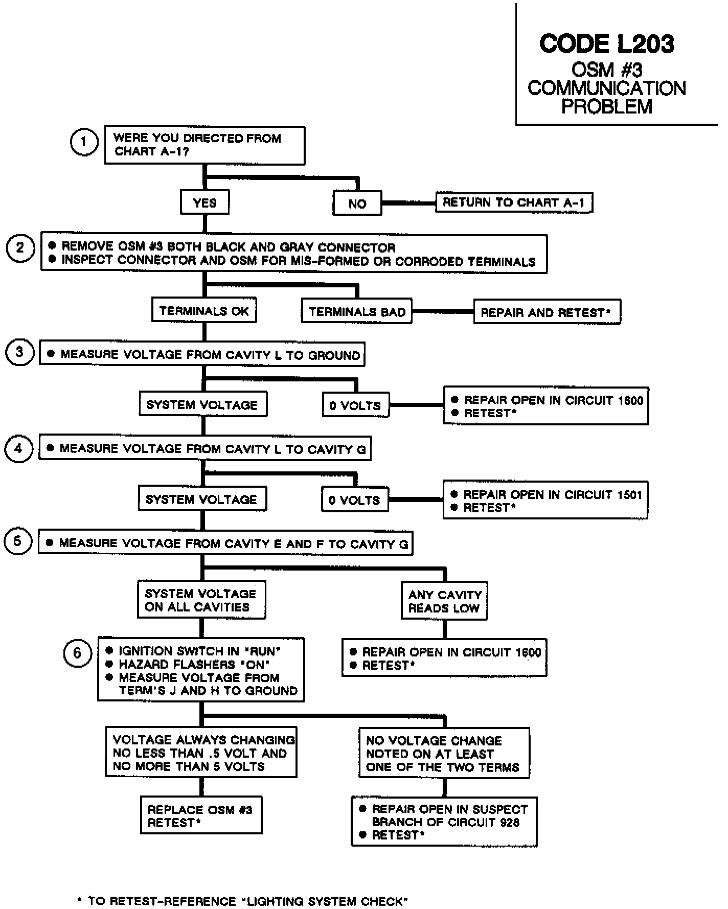 6. Hazard flashers will increase data line activity, typical voltages will be between 0 and 5 volts and constantly changing. This will help identify if the OSM or data line is the problem.