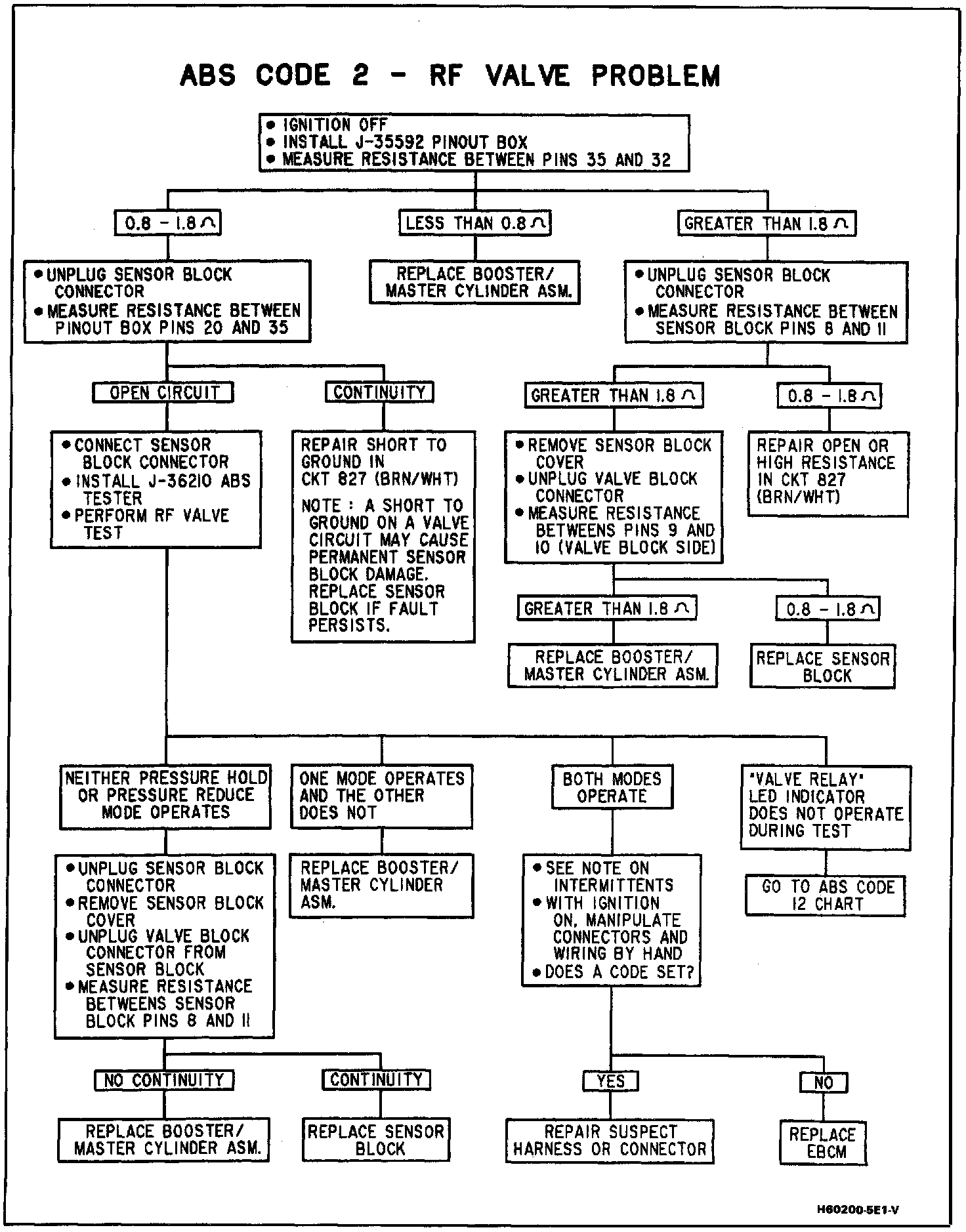 Valve line voltage is constantly monitored by the EBCM and compared with expected values. if expected values do not match actual voltages, an ABS trouble code is set. Additionally, the valves are actively tested each key cycle. When the vehicle first reaches approximately 4 mph after key-on, the EBCM cycles each valve and checks for proper response. This test may be heard as a slight "popping" or "ticking" noise when the vehicle first starts moving.