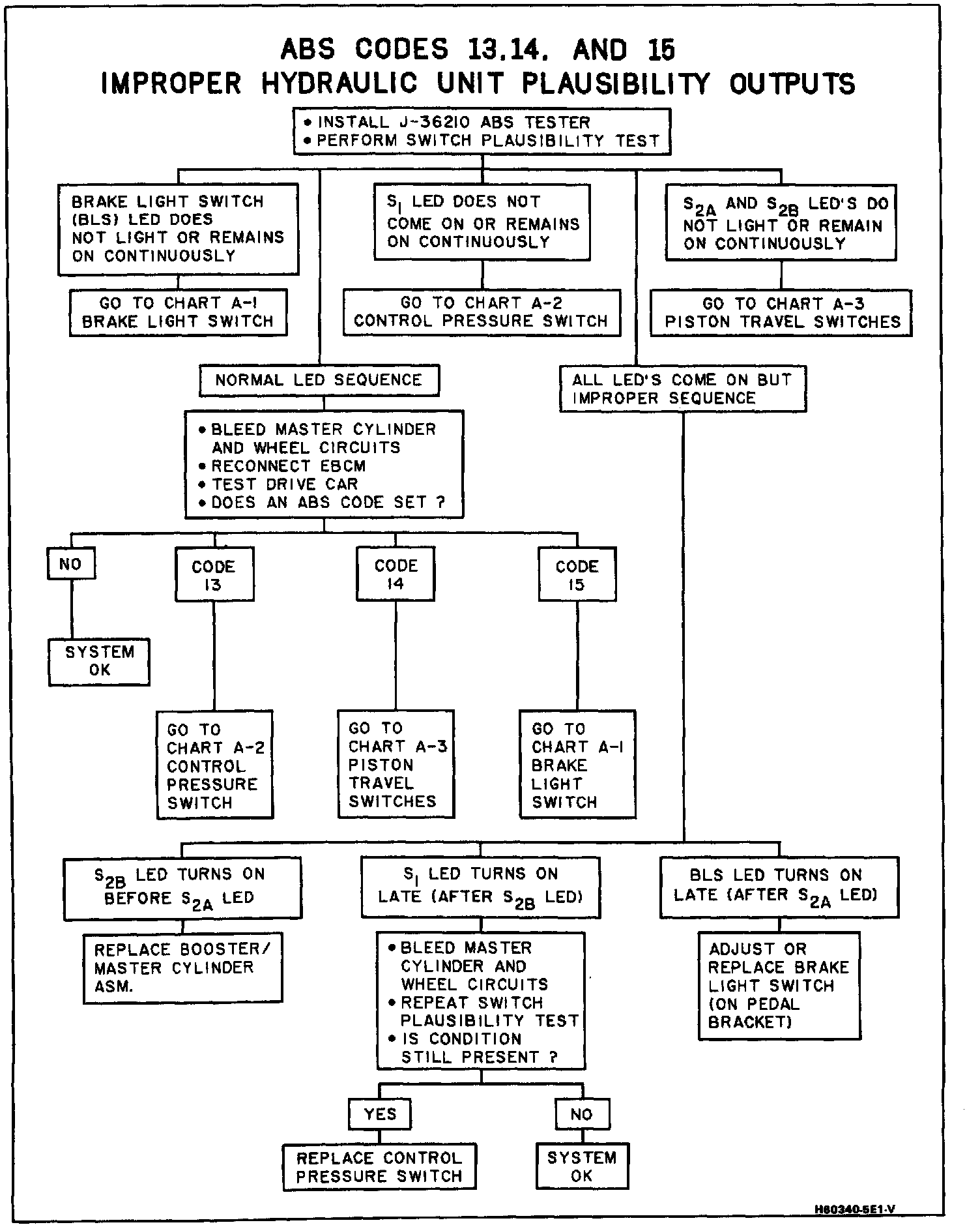Code 13 - S2B opens before S1. Code 14 - S1 opens before S2A. Code 15 - S1 opens before Brake Light Switch (BLS) closes or S2B opens before BLS closes.