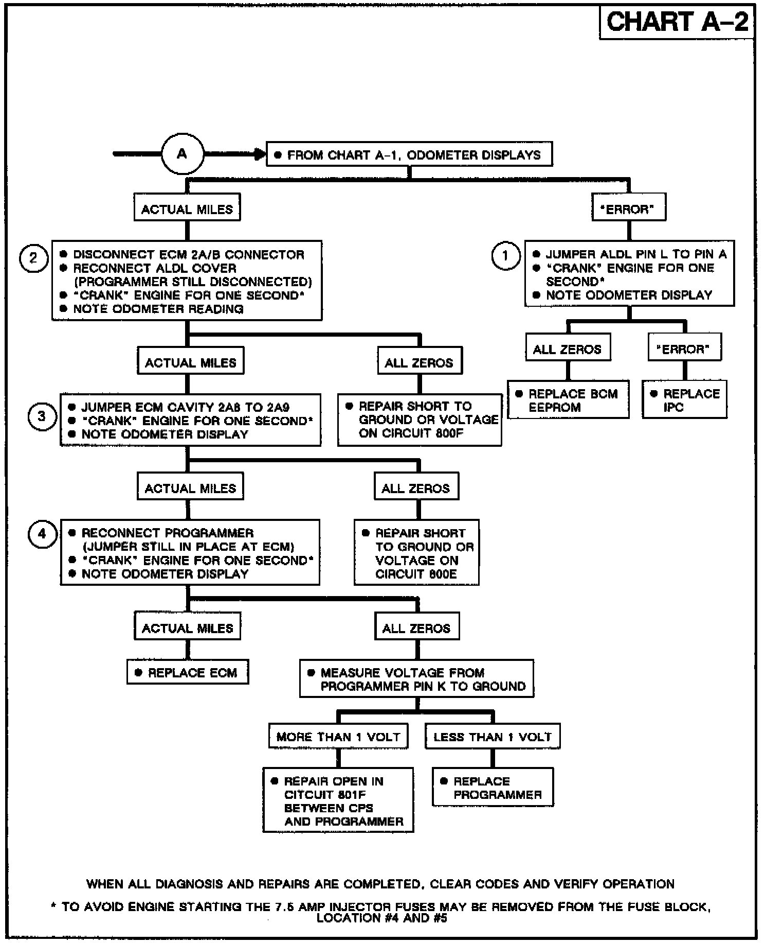 1. If "ERROR" is displayed the BCM EEPROM and the Instrument Panel Cluster (IPC) are suspect, shorting the data line to ground (ALDL pin A) and cranking will result in a zero mileage reading if the EEPROM is at fault.
