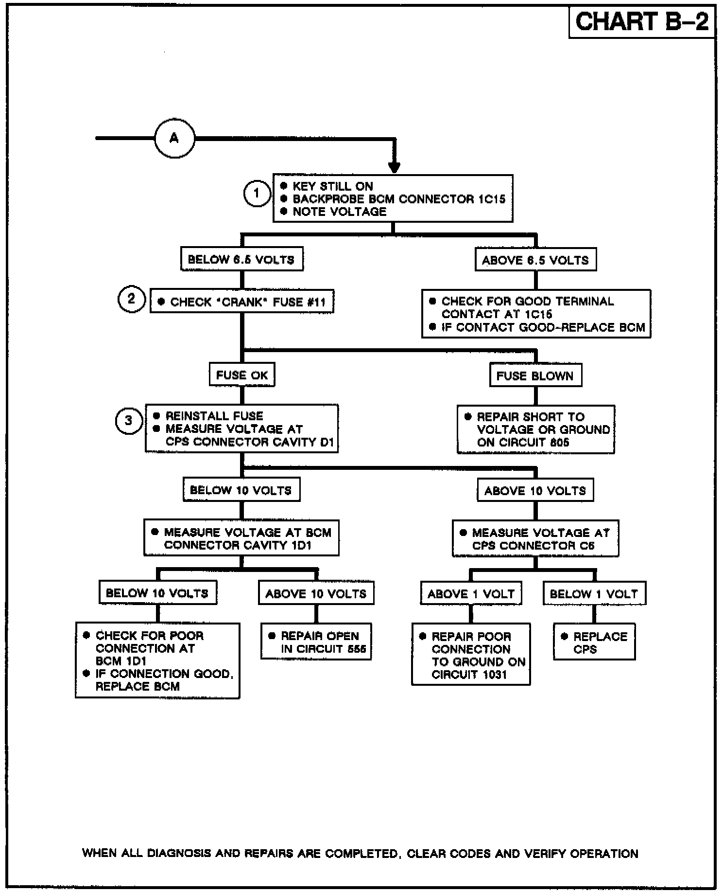 You have been directed to this chart from chart B-1 due to one or all displays are black and the brake lamps do not work. This chart will determine why the BCM and Central Power Supply (CPS) are not "Awake" and not able to function.