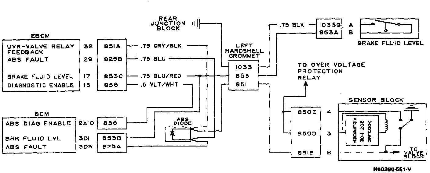 ^ The EBCM disables anti-lock function, grounds the ABS Fault Line and grounds the BRAKE lamp circuit.