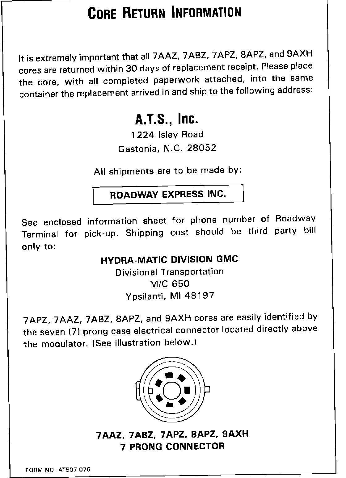 Also, the dealership is required to contact Roadway Express, Inc. for delivery of the core to the remanufacturing site. The forms are similar to the THM 440-T4 SRTA Program except for those shown in Figures 5 and 6.