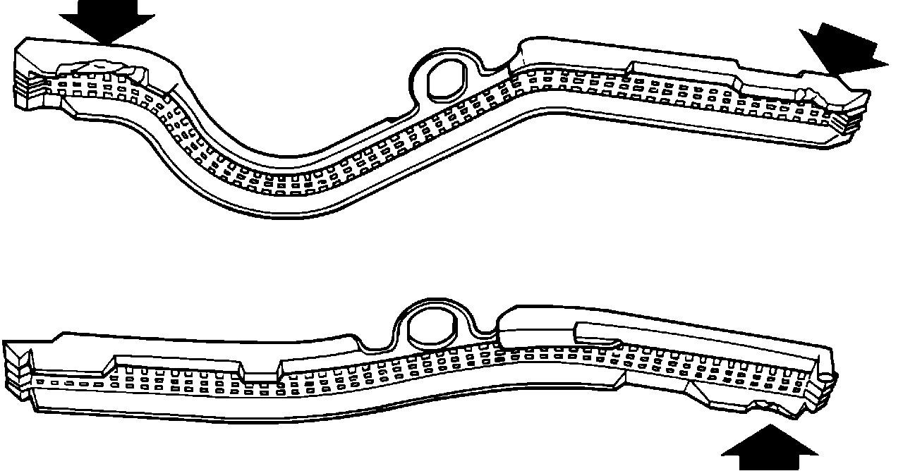 A new design intake manifold end seal has been developed to improve the integrity of this joint. The new design shown in Figure 1 has reinforced flanges to more positively retain the seal in position. A pair of these revised seals (one front and one rear) are available by ordering P/N 3635212.