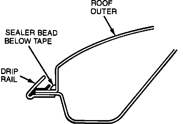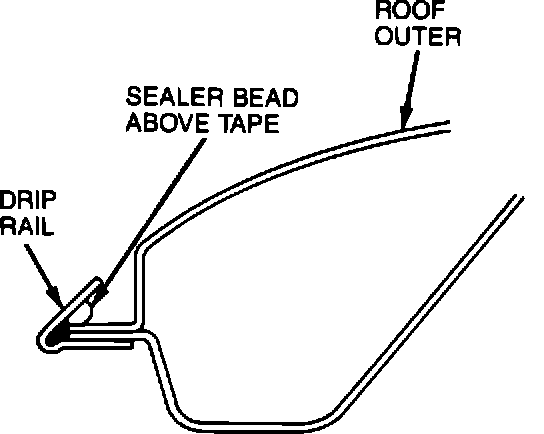 5. Apply a second bead of sealer along the length of the drip rail on top of the cosmetic tape and brush to the outboard side of the rail. Refer to Figure 3.