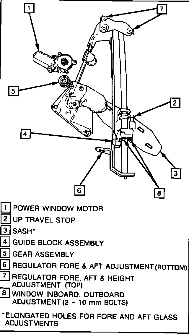 9. Reinstall the door window relocating it in its last marked position to the sash. If no improvement in condition is noted, replace the regulator and verify all previous adjustments.
