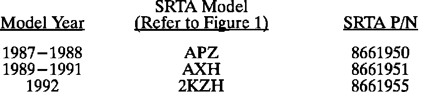 IN THE INTEREST OF CUSTOMER SATISFACTION, SRTA MODELS SHOULD ONLY BE CONSIDERED WHEN THE PROJECTED COST OF PARTS AND LABOR EXCEEDS THE COST OF A SRTA REPLACEMENT.