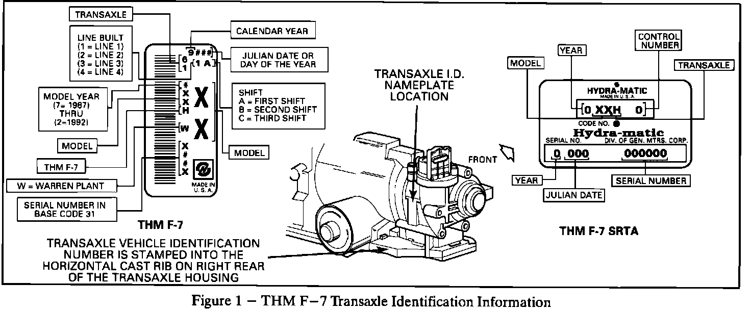 Since the introduction of the THM F-7 (RPO ME9) automatic transaxle in 1987, units requiring service have been replaced through the SRTA Program. Effective September 1, 1992 GM dealers can perform full service operations on the F-7 in addition to complete unit replacement through use of the F-7 Service Replacement Transmission Assembly (SRTA) Program.