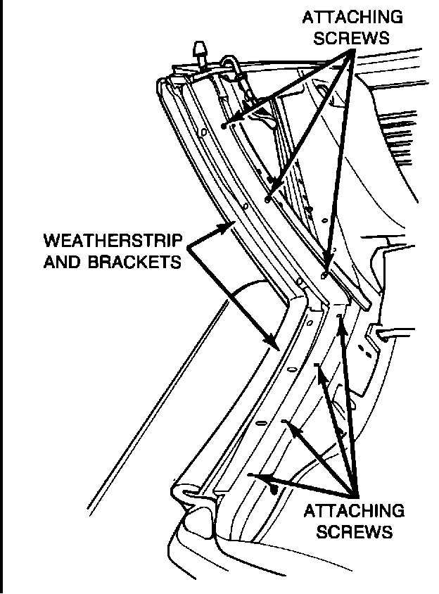 3. Loosen the three screws securing the B-pillar weatherstrip bracket to the hardtop (Figure 2).