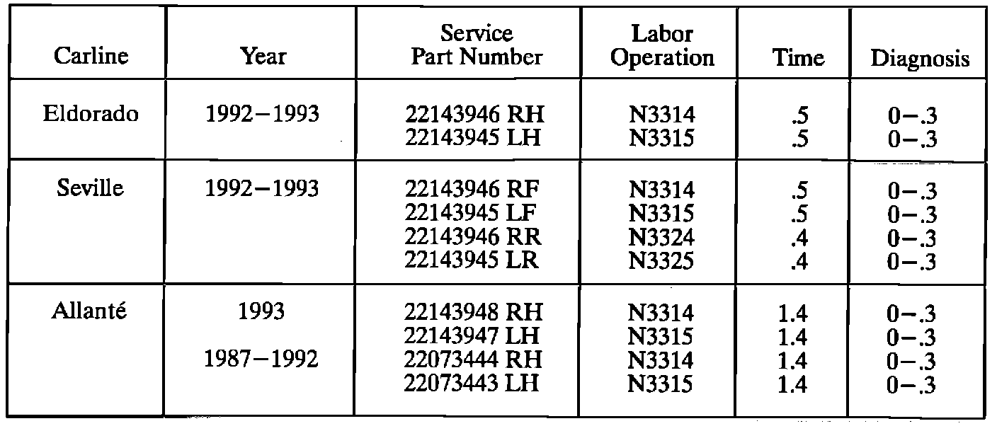 Some 1992-1993 Eldorados and Sevilles and 1987-1993 Allantes may experience one or more of the following conditions when operating the side door glass: