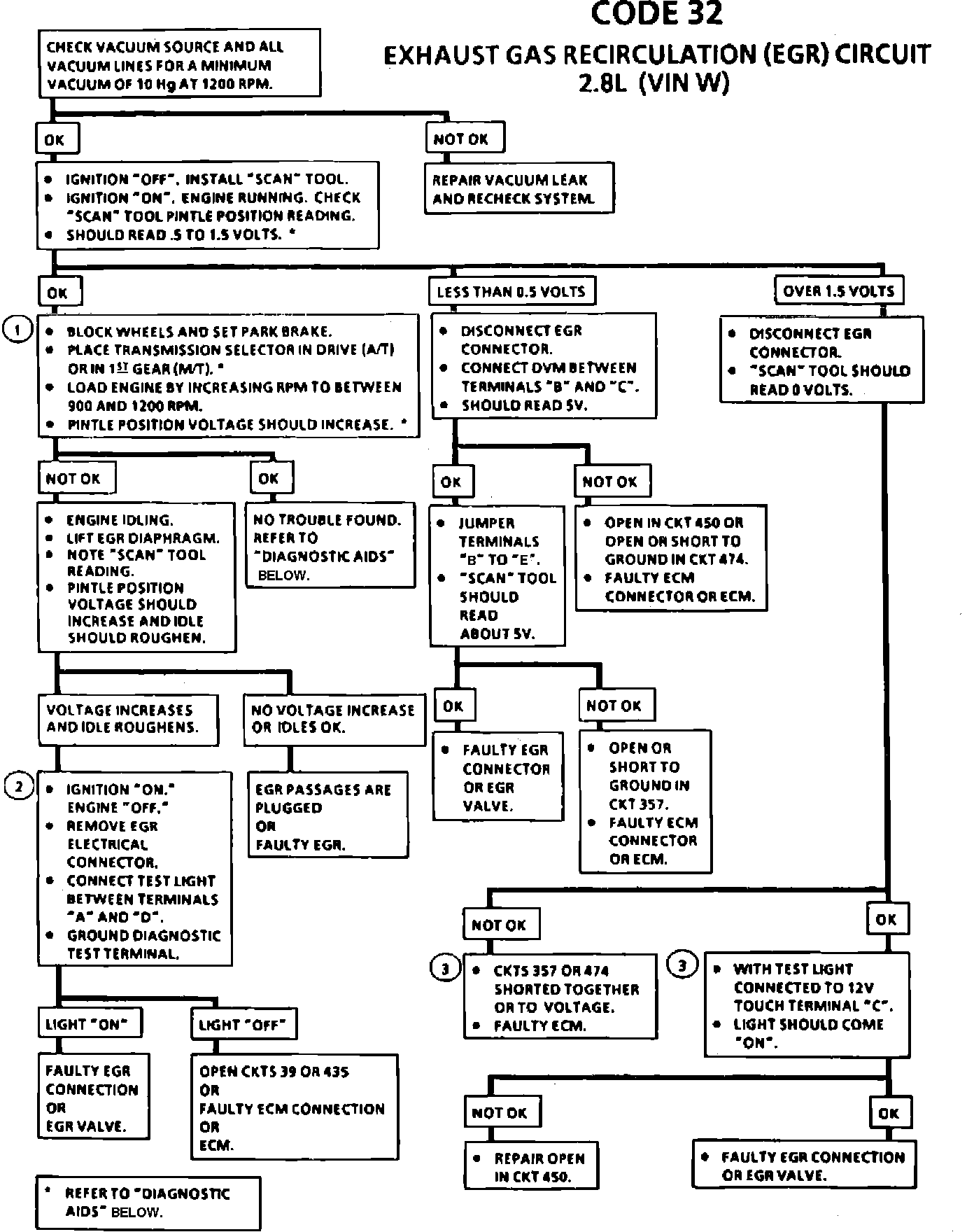 3. If CKT 450 is open, the pintle signal will go high. If CKT 357 becomes shorted to 12 volts or to CKT 474, the signal voltage will go high causing a Code 32.