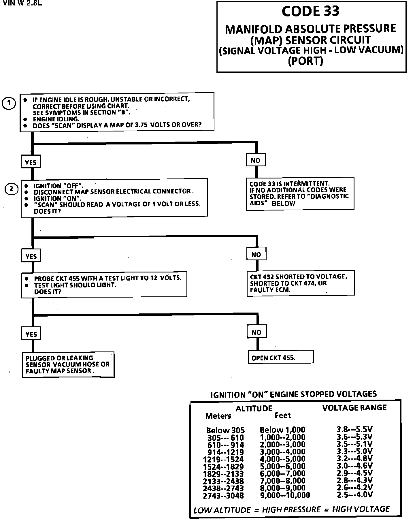 Chart - Code 33 Manifold Absolute Pressure (MAP)signal voltage low, high vacuum: