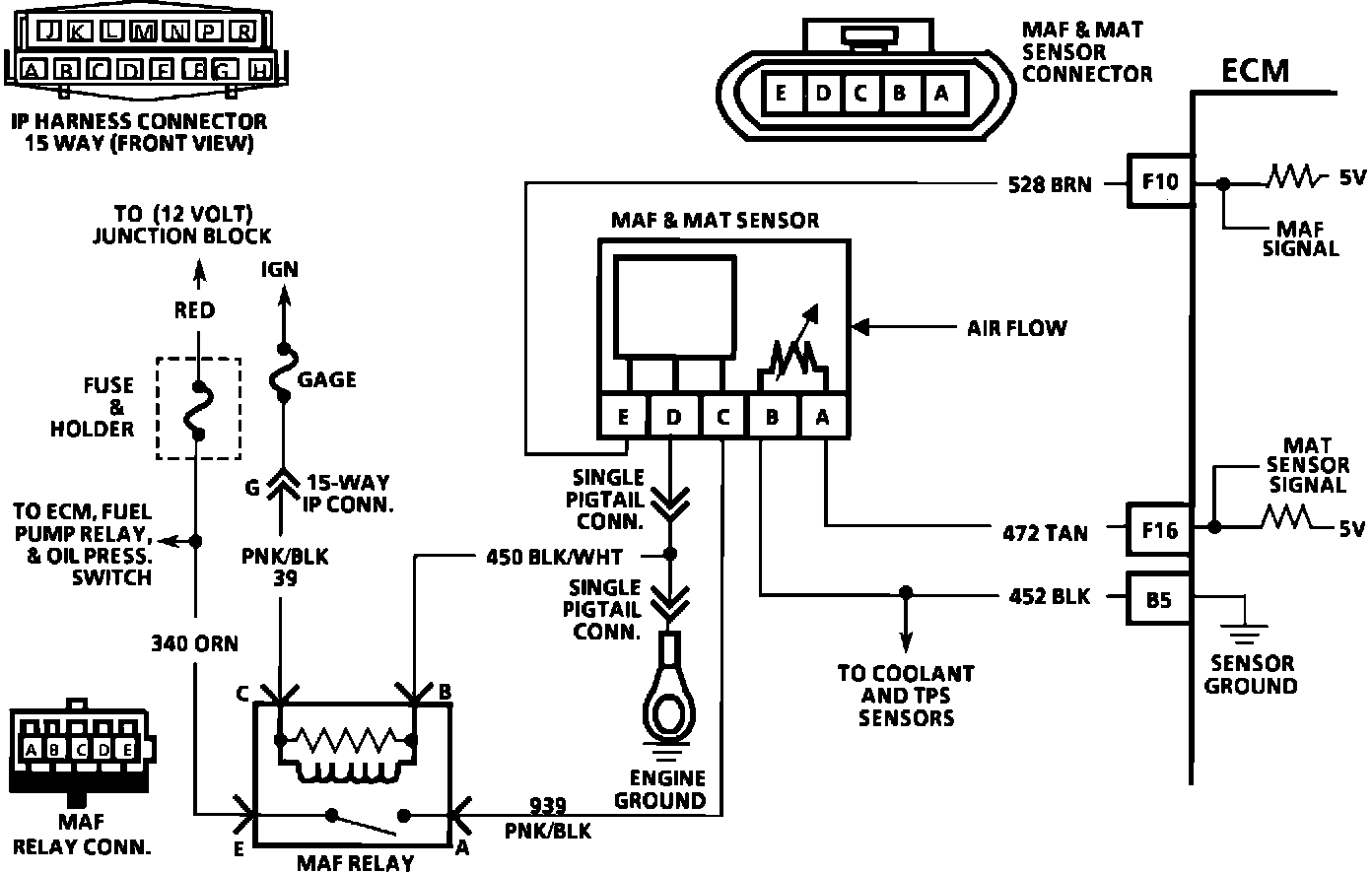 Wiring Diagram for Mass Air Flow Sensor Circuit: