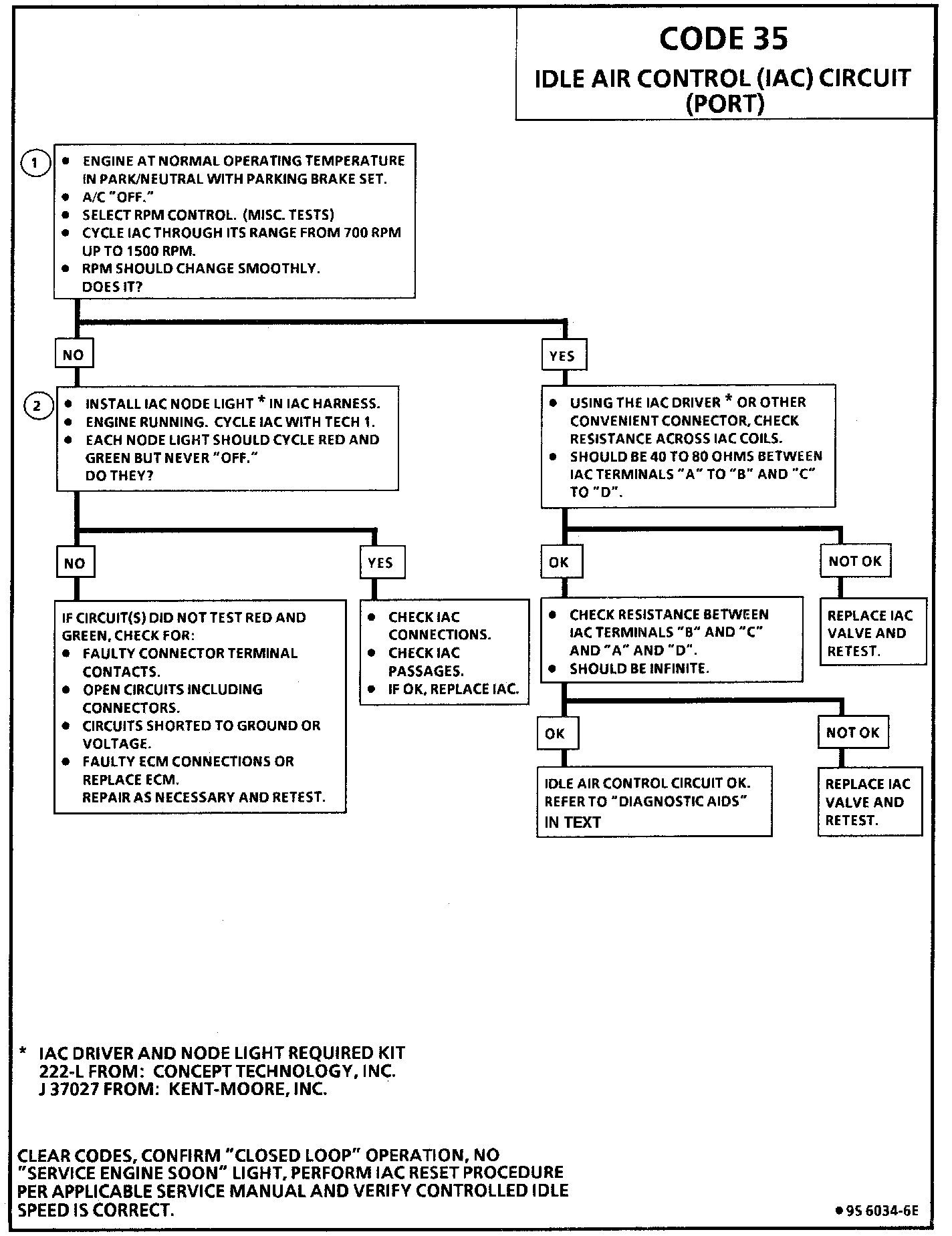 Code 35 will set when the closed throttle engine speed is 300 rpm above or below the desired (commanded) idle speed for 50 seconds Review the general description of Idle Air Control (IAC) operation in "Component Descriptions."