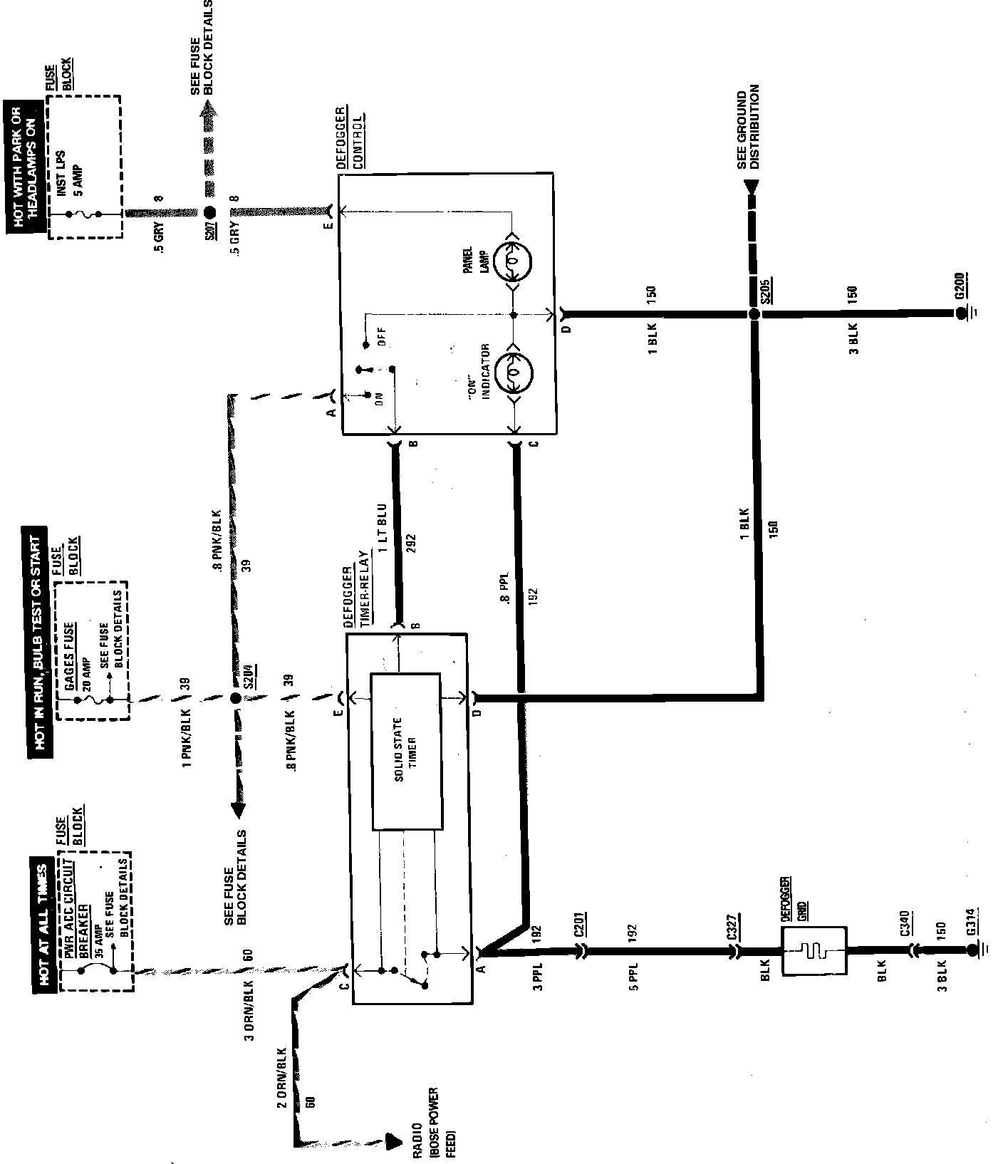 Fig. 284 Rear Window Defogger Wiring Circuit: