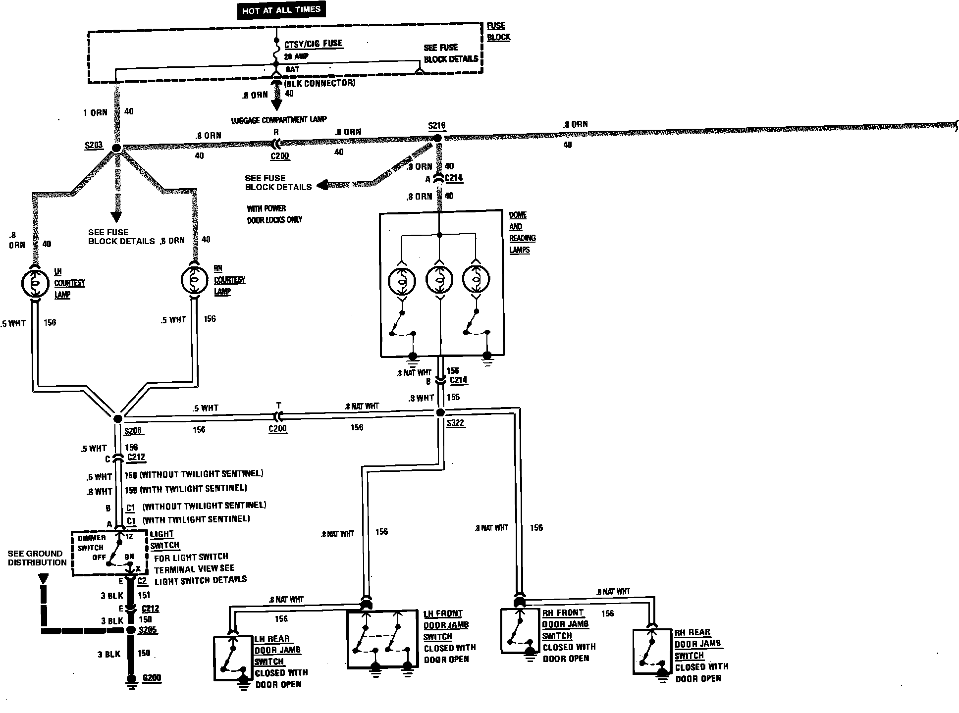 Fig. 132 Garage Door Opener & Interior Lamp Wiring Circuit (Part 1 Of 2):