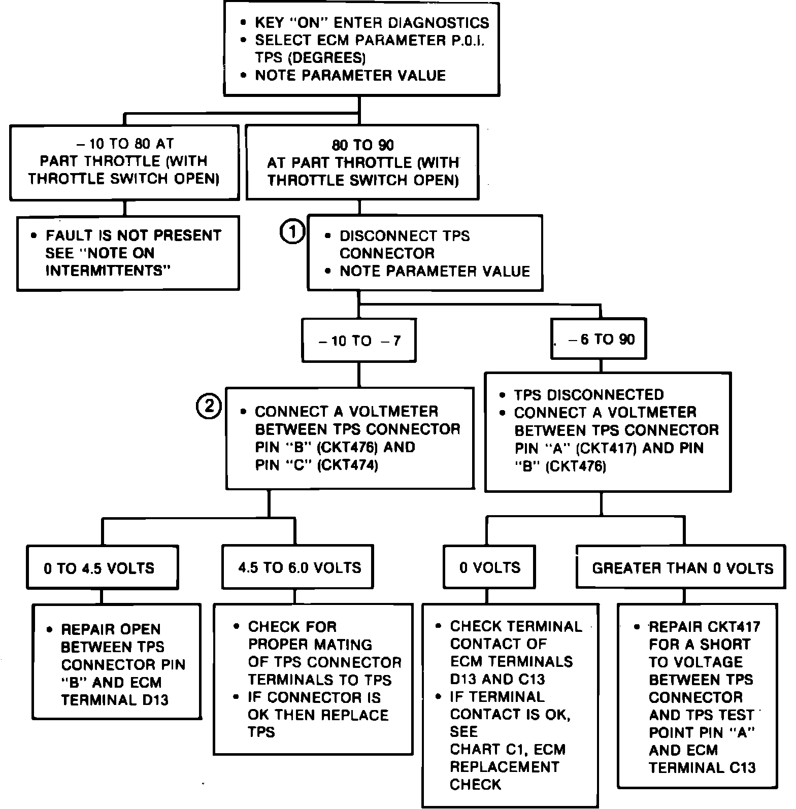Fig. 44 ECM Code E21 Diagnosis (Shorted Throttle Position Sensor Circuit):