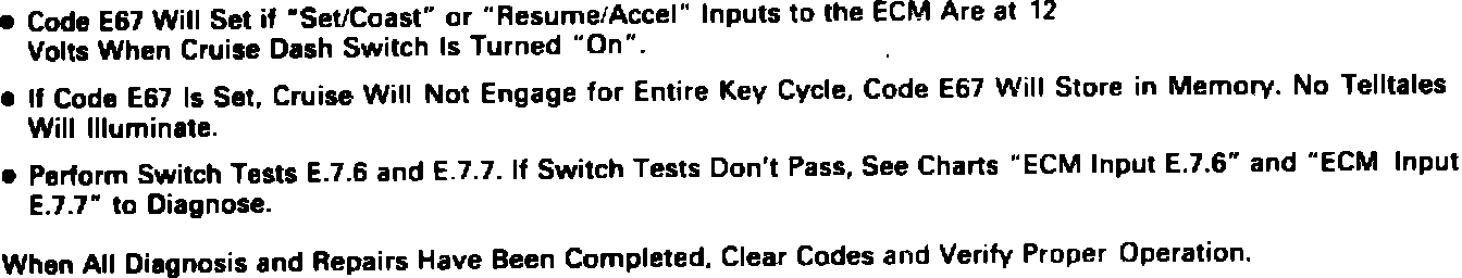 Fig. 76 ECM Code E67 Diagnosis (Set/Coast Or Resume/Accel Circuits Shorted):