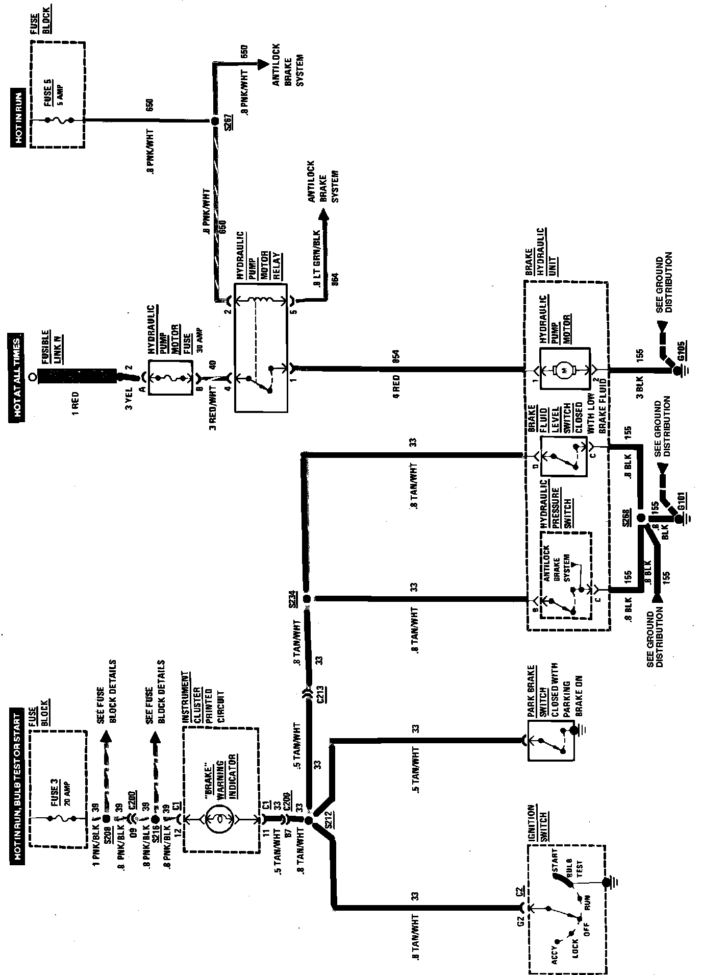 Brake Warning System Wiring Circuit (W/Anti-Lock Brake System):