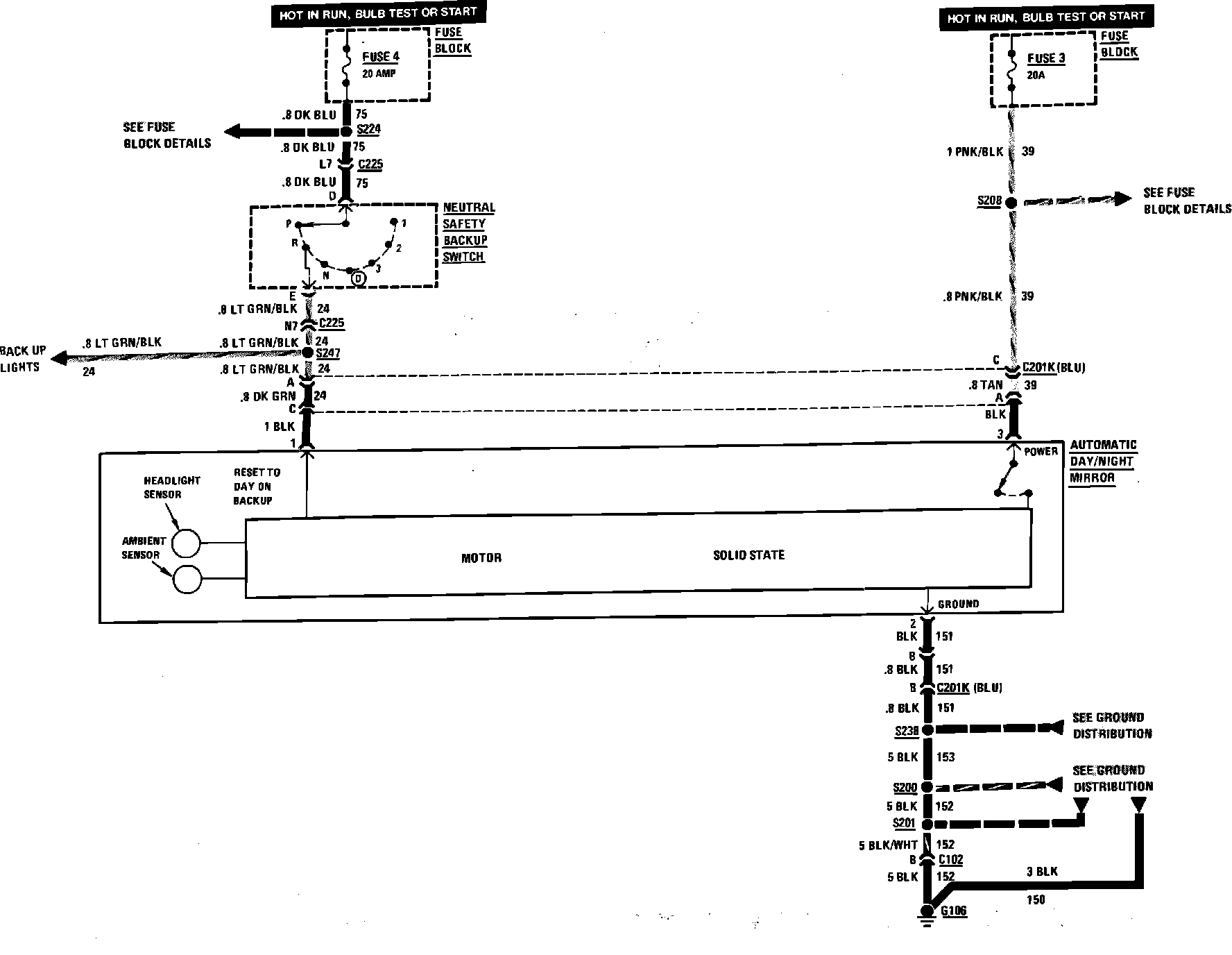 Automatic Day/Night Mirror Wiring Circuit: