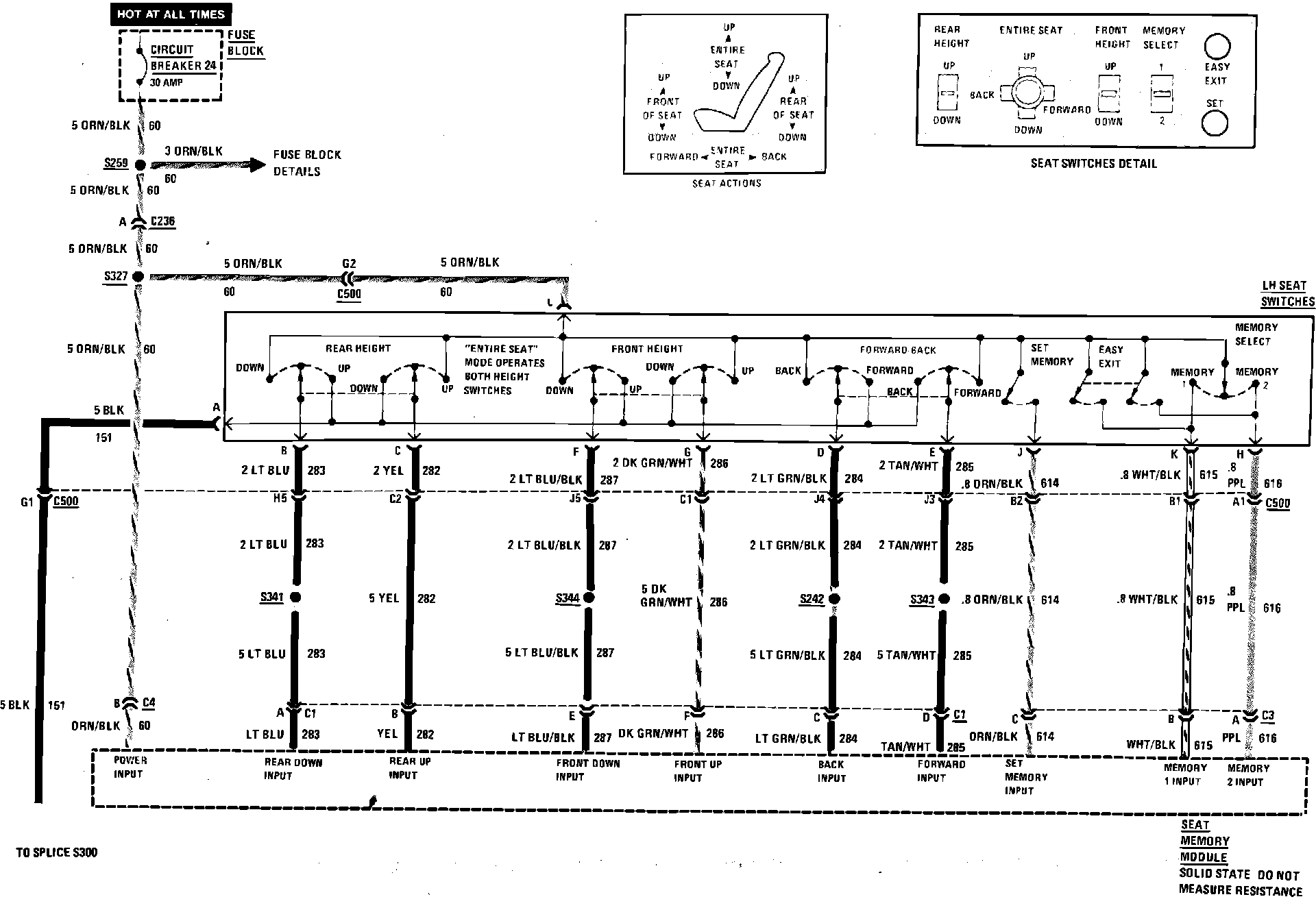 Power Seats Wiring Circuit W/Memory Seats: