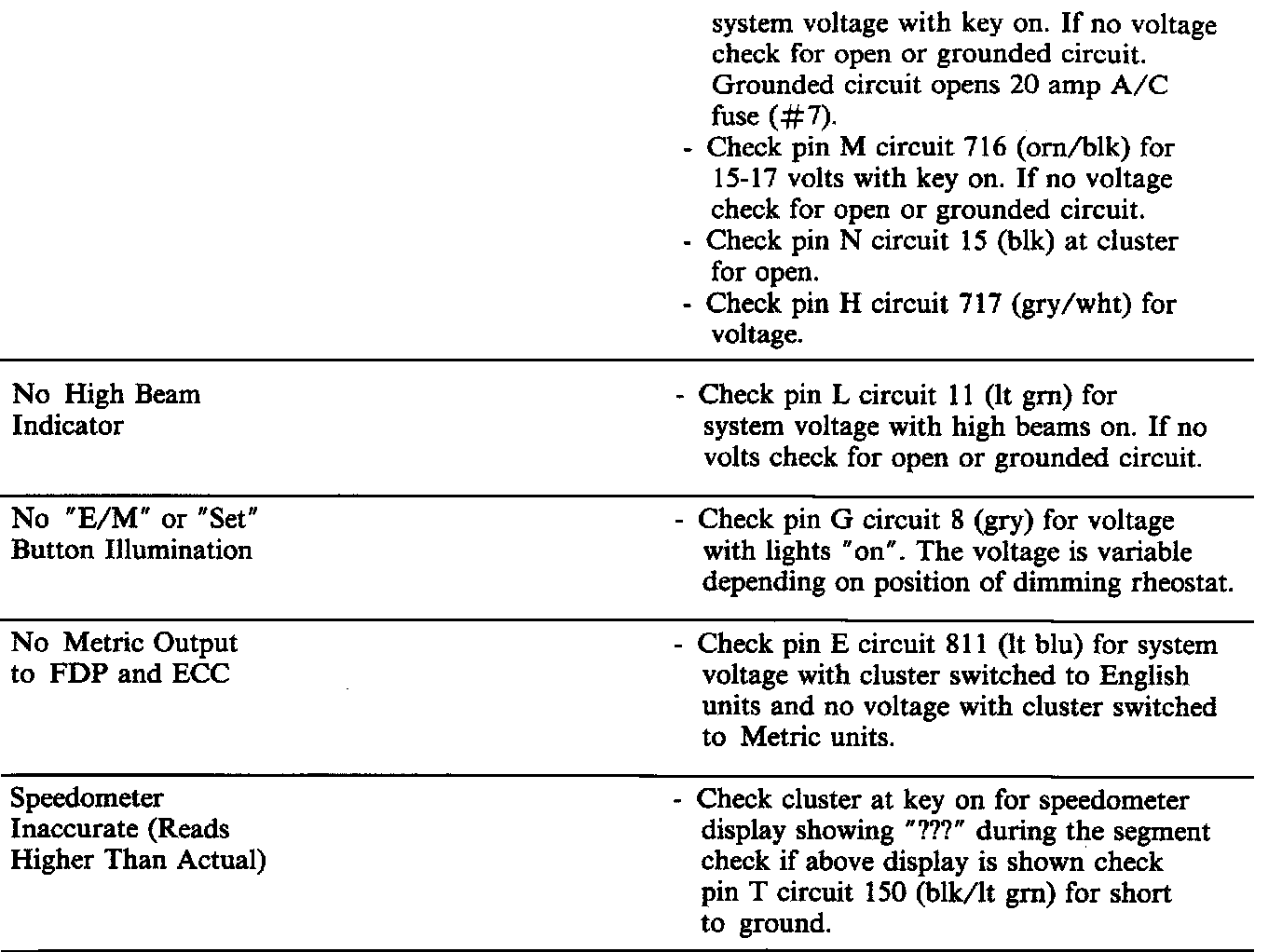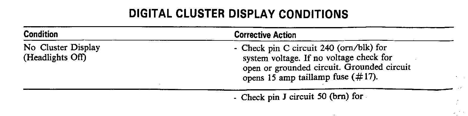 Digital Cluster Display Conditions (cont.):