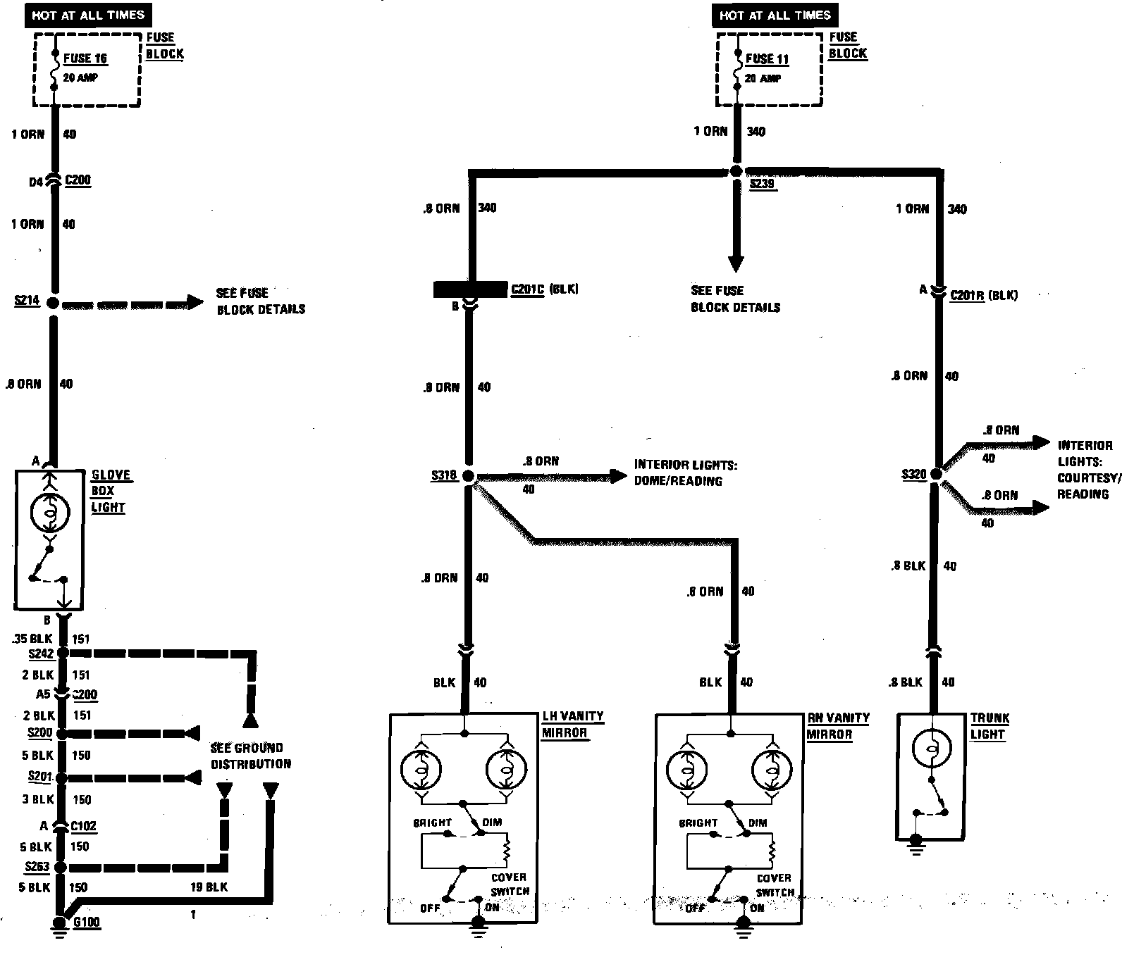 Interior Lamps Wiring Circuit (Glove Box, Trunk & Vanity Mirror).: