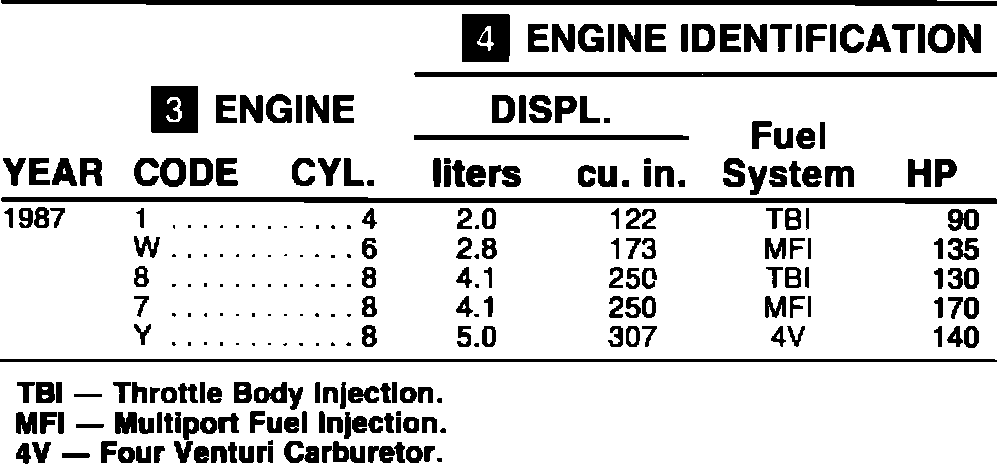 Engine Identification - 1987: