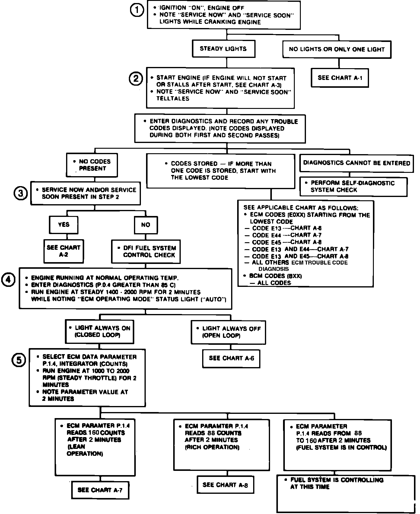 Understanding the chart and using it correctly will reduce diagnosis time and prevent the unnecessary replacement of parts. Refer to the numbers below corresponding to the numbers on the chart.