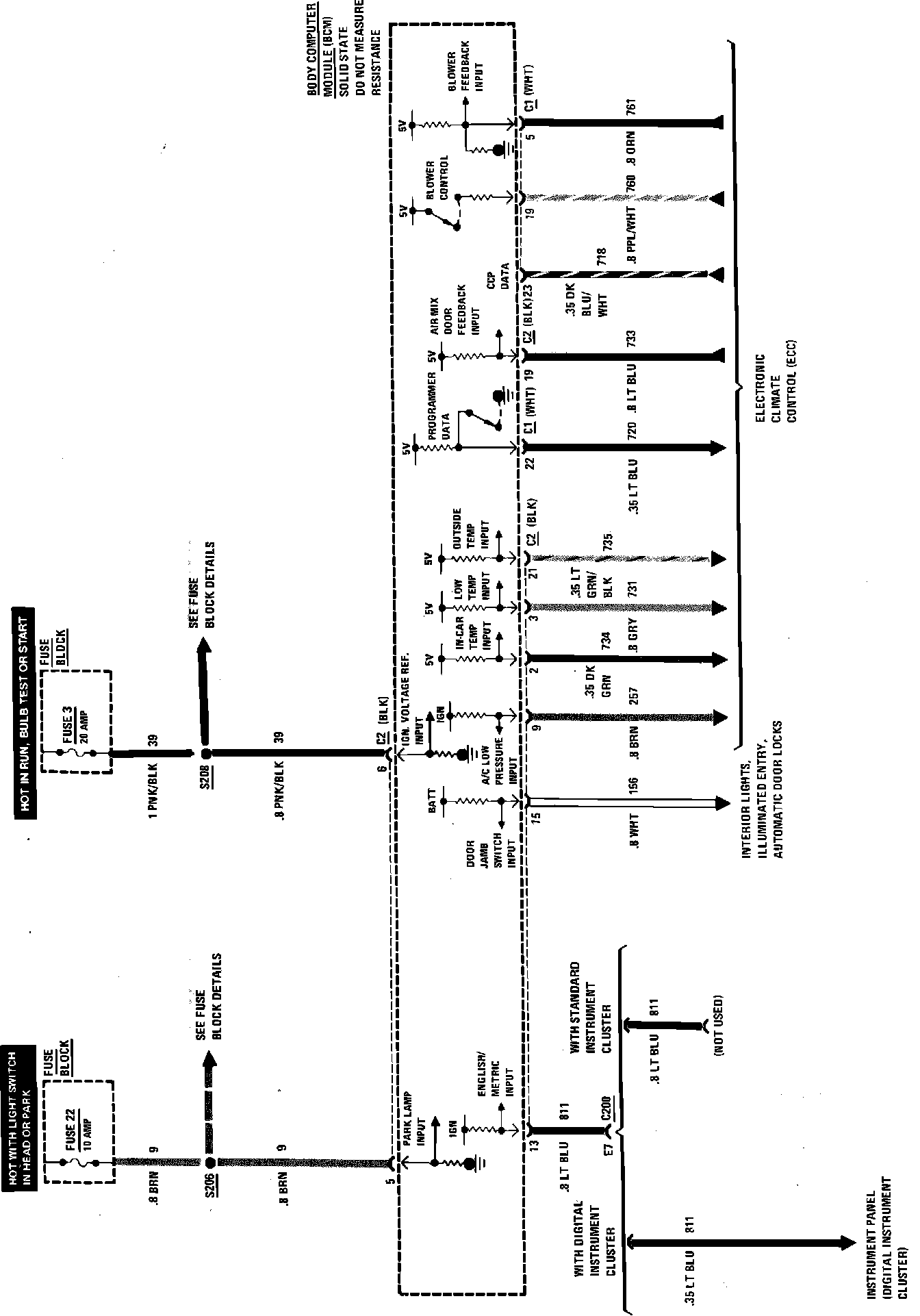 Body Computer Module Input & Output Wiring Circuit: