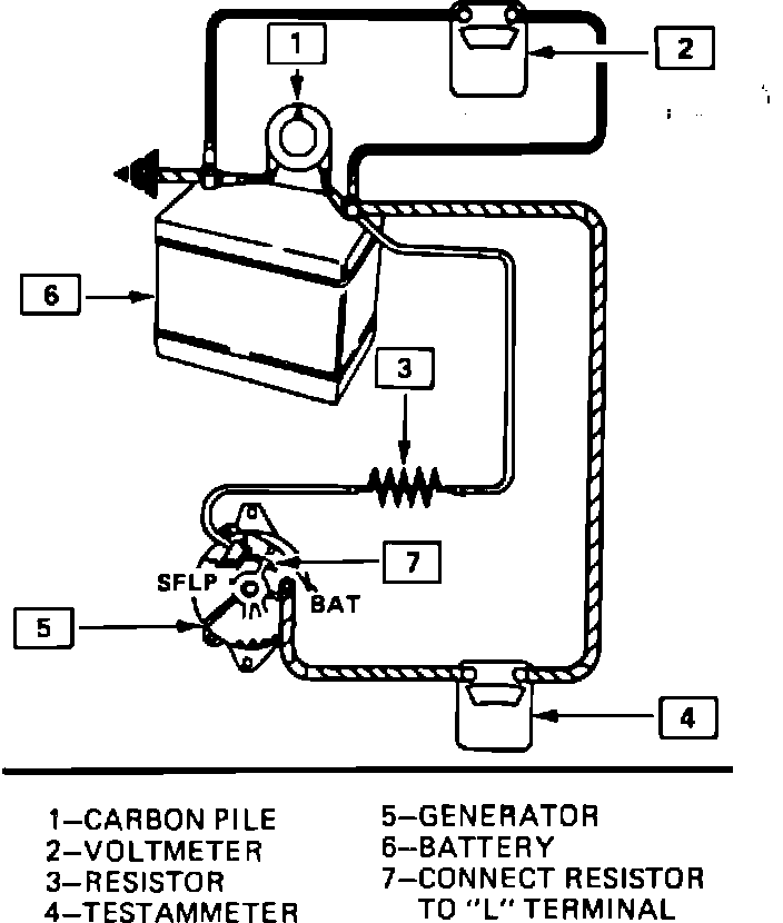 1. Make connections as shown in Fig. 2, however leave the carbon pile disconnected. The ground polarity of the alternator and battery must be the same. The battery must be fully charged. Use a 30-500 ohm resistor between battery and L terminal.
