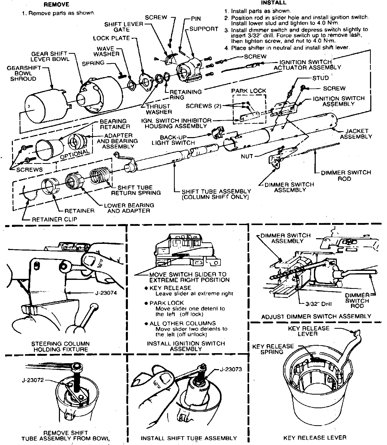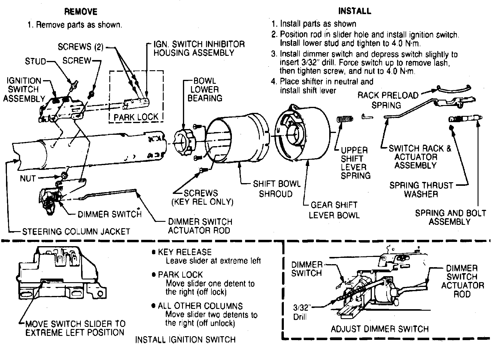 Fig. 3 Ignition & dimmer switch removal & installation. Tilt column: