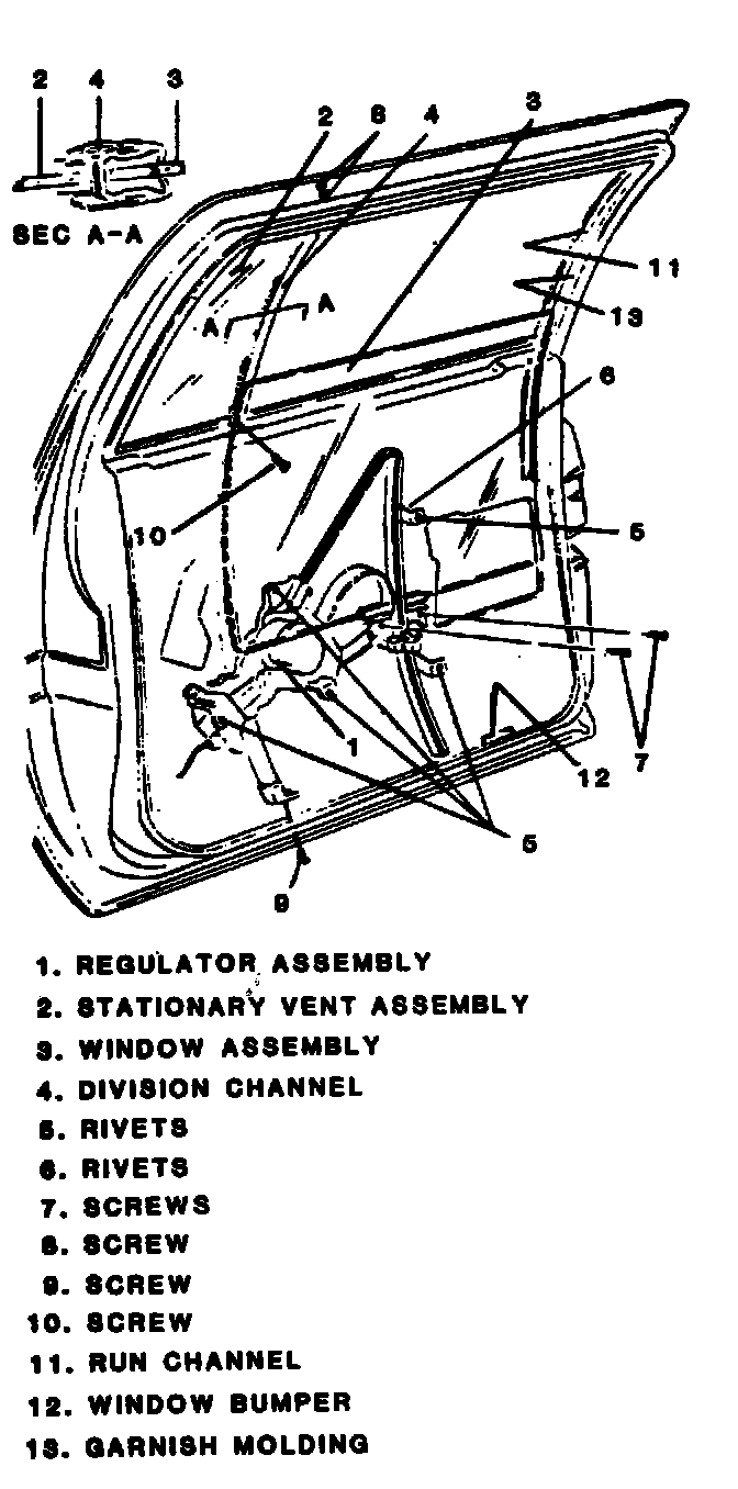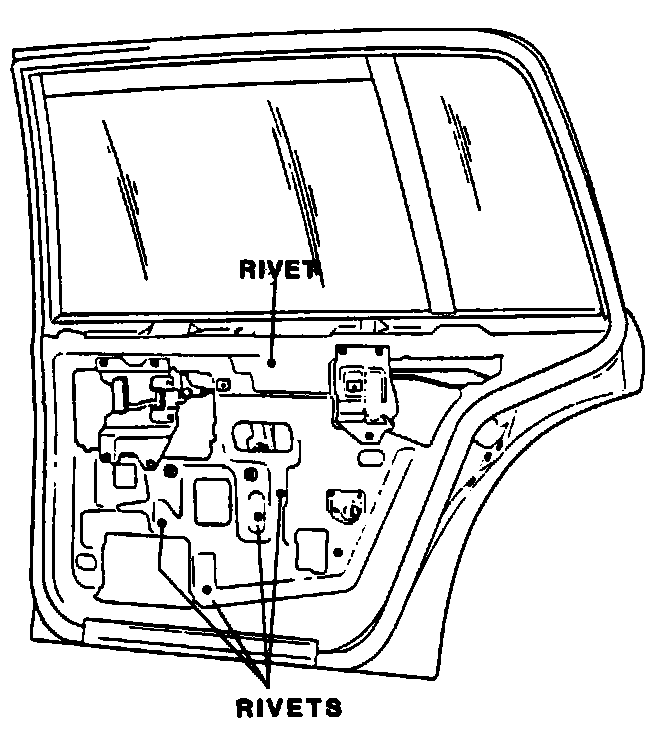 3. Regulator to door inner panel using 1/4" peel type rivets, five required.