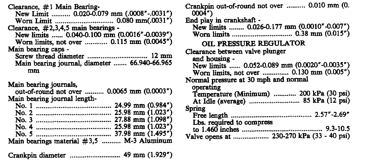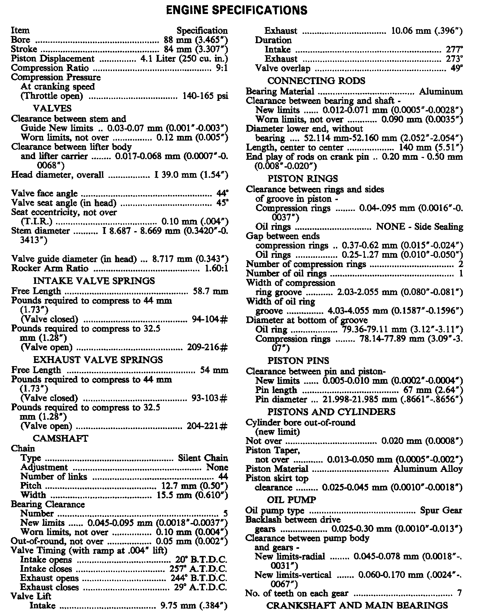 Continued Engine Specifications:
