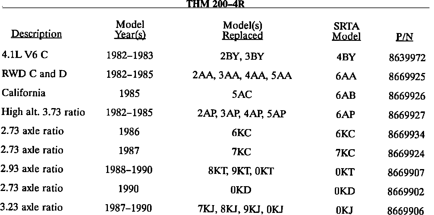 A/T - Replacement Transmission Part Numbers