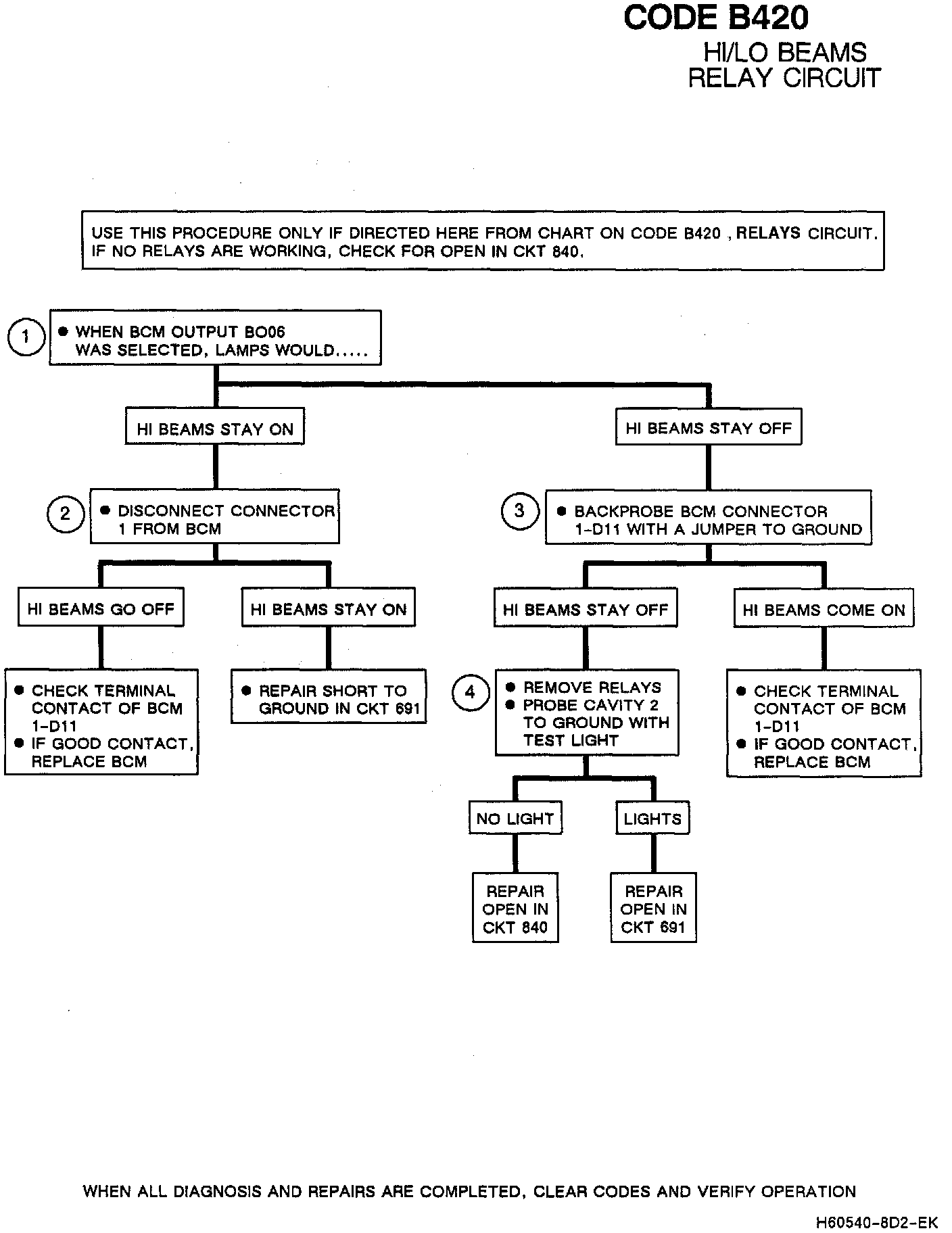 If the HI/LO beams did not cycle on and off when B006 was selected, then this is the system that set Code B420.