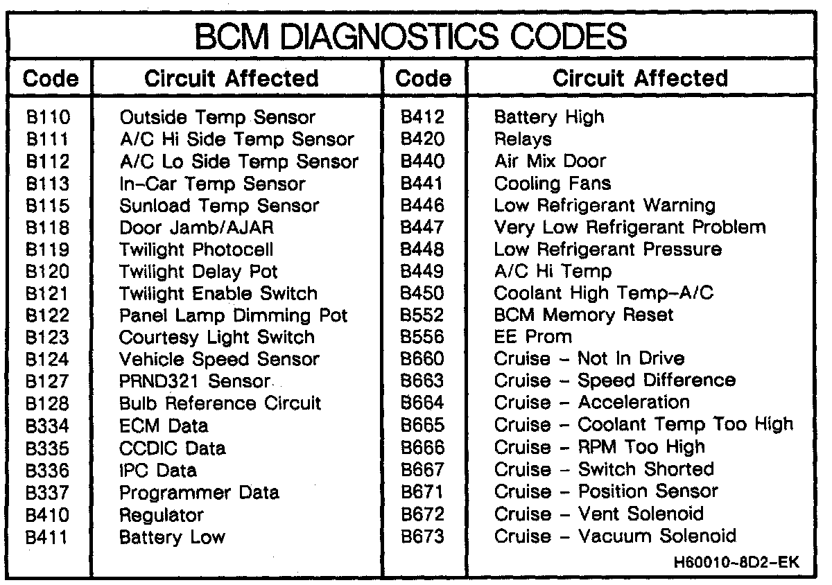 BCM Diagnostic Codes: