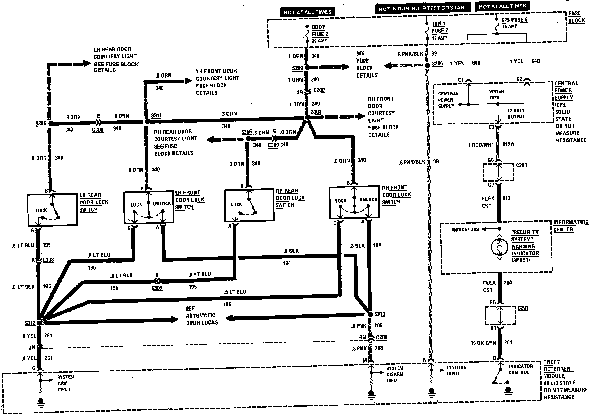 Theft Deterrent System Wiring Circuit. Less Auto Door Locks, 4 Door: