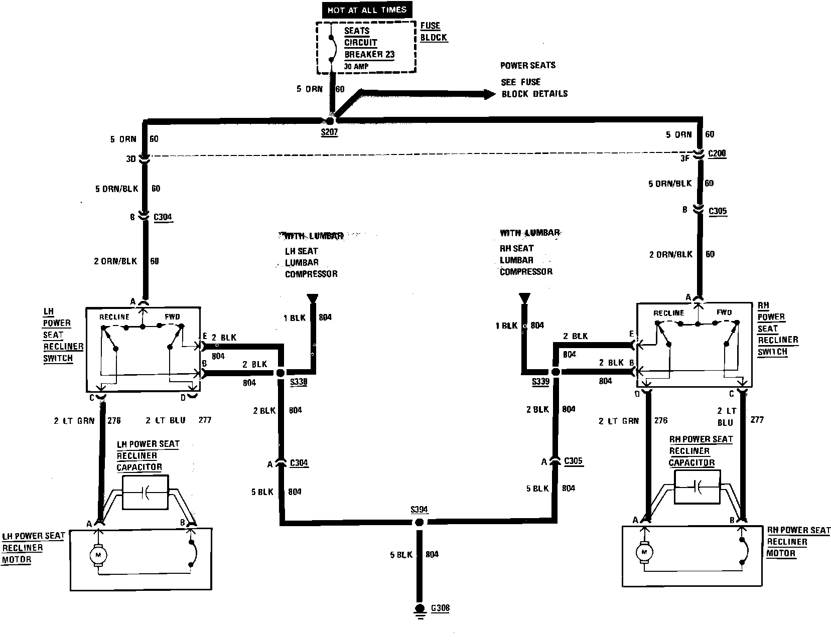 Reclining Seats Wiring Circuit: