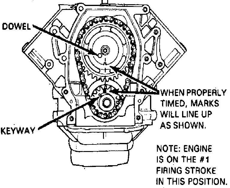 4. Remove screw attaching camshaft sprocket to camshaft, then the camshaft and crankshaft sprockets with the timing chain attached.