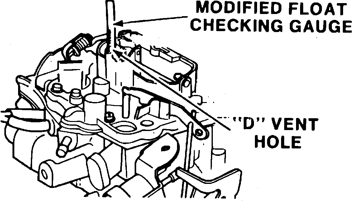 MC solenoid travel must be within specifications before idle mixture can be adjusted. Perform check with engine off and air cleaner removed. Before proceeding, modify float gauge J-9789-130 or equivalent, to fit in ``D'' shaped vertical vent, Fig. 3, on carburetor air horn.