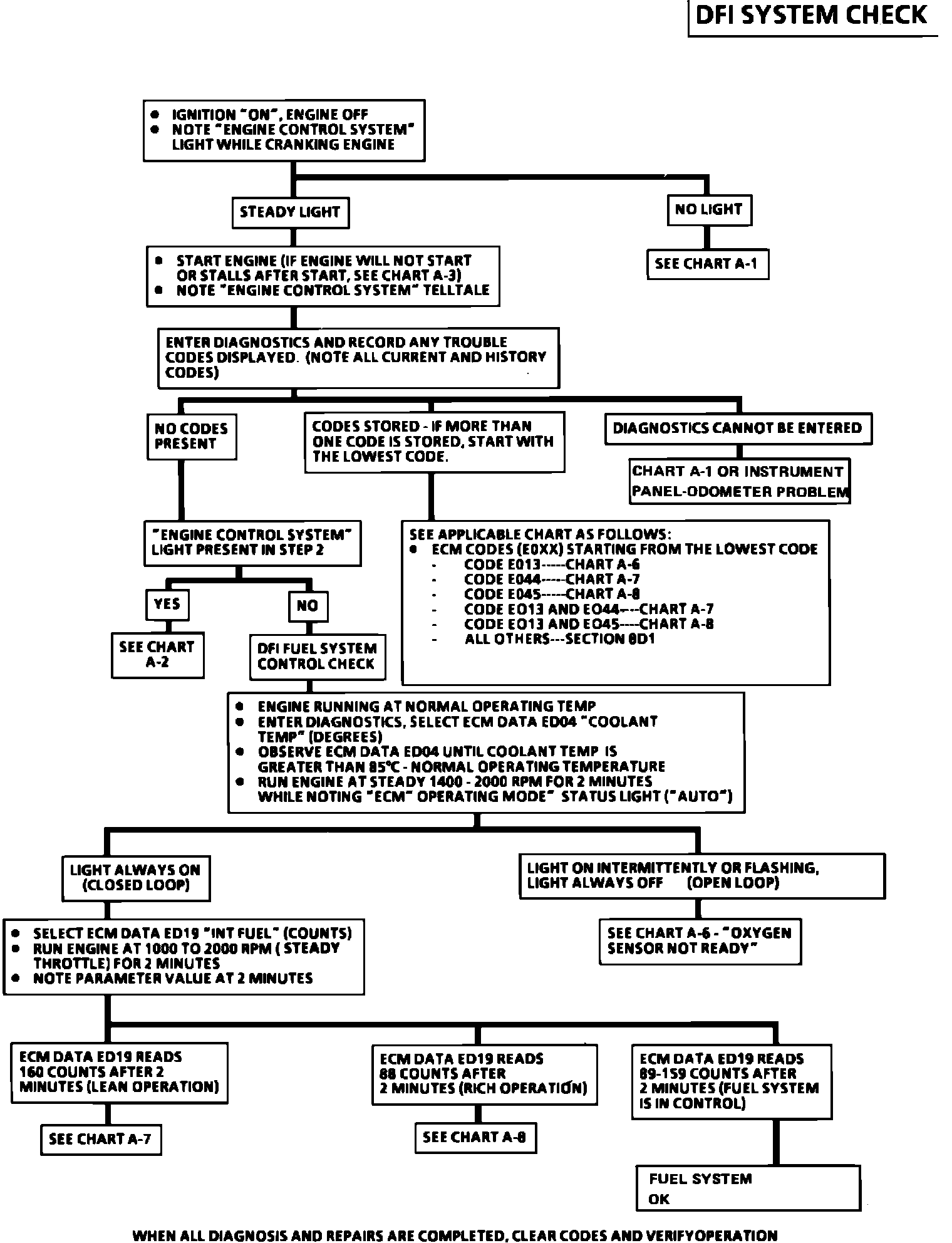 The DFI System Check is an organized approach for identifying a problem caused by the Digital Fuel Injection System. Driver comments normally fall into one of the following areas: