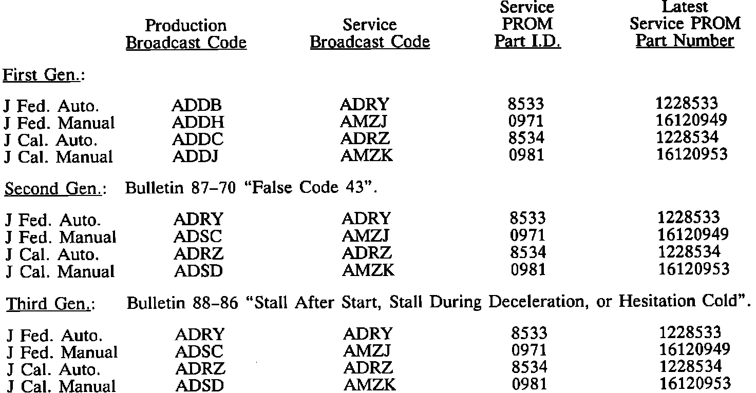 1987 J EQUIPPED WITH 2.8L PFI V-6 ENGINE