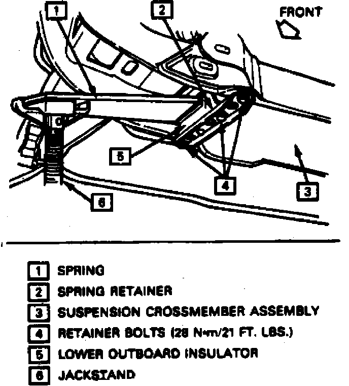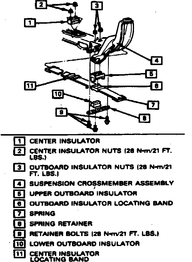 5. Remove retainer bolts, retainer and insulator from opposite end of spring, then withdraw spring from crossmember.
