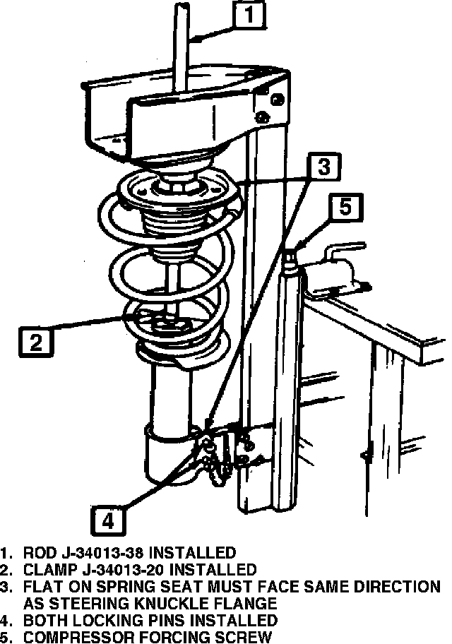 8. Install rod J-34013-38 or equivalent into strut assembly to guide dampener shaft on reassembly of strut.
