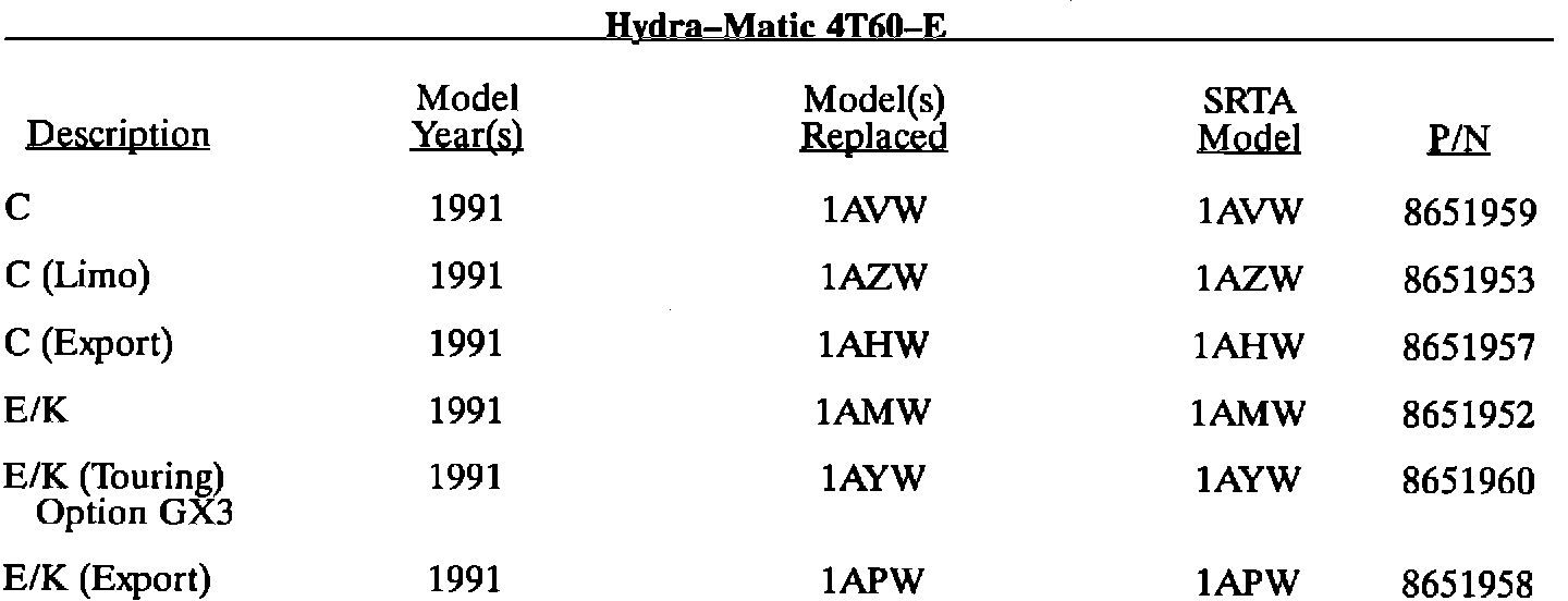A/T - Replacement Transmission Part Numbers
